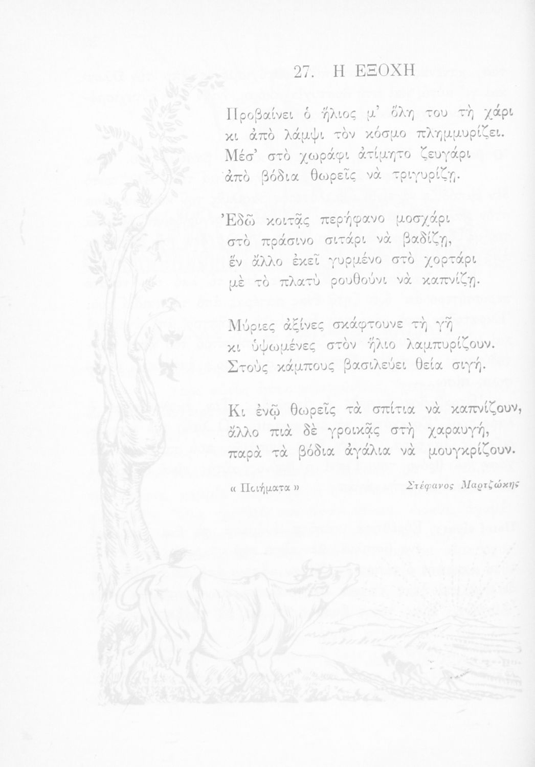 Αναγνωστικό Ε΄ Δημοτικού που περιέχει πεζά και ποιήματα εμπνευσμένα από τη θρησκευτική, εθνική, κοινωνική ζωή καθώς και από τις ασχολίες των Ελλήνων, την αρχαία και σύγχρονη ελληνική ιστορία και τον πολιτισμό.