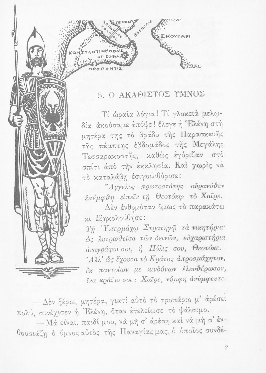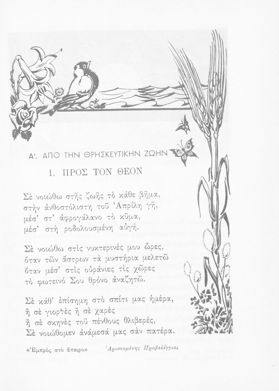 Αναγνωστικό Ε΄ Δημοτικού που περιέχει πεζά και ποιήματα εμπνευσμένα από τη θρησκευτική, εθνική, κοινωνική ζωή καθώς και από τις ασχολίες των Ελλήνων, την αρχαία και σύγχρονη ελληνική ιστορία και τον πολιτισμό.