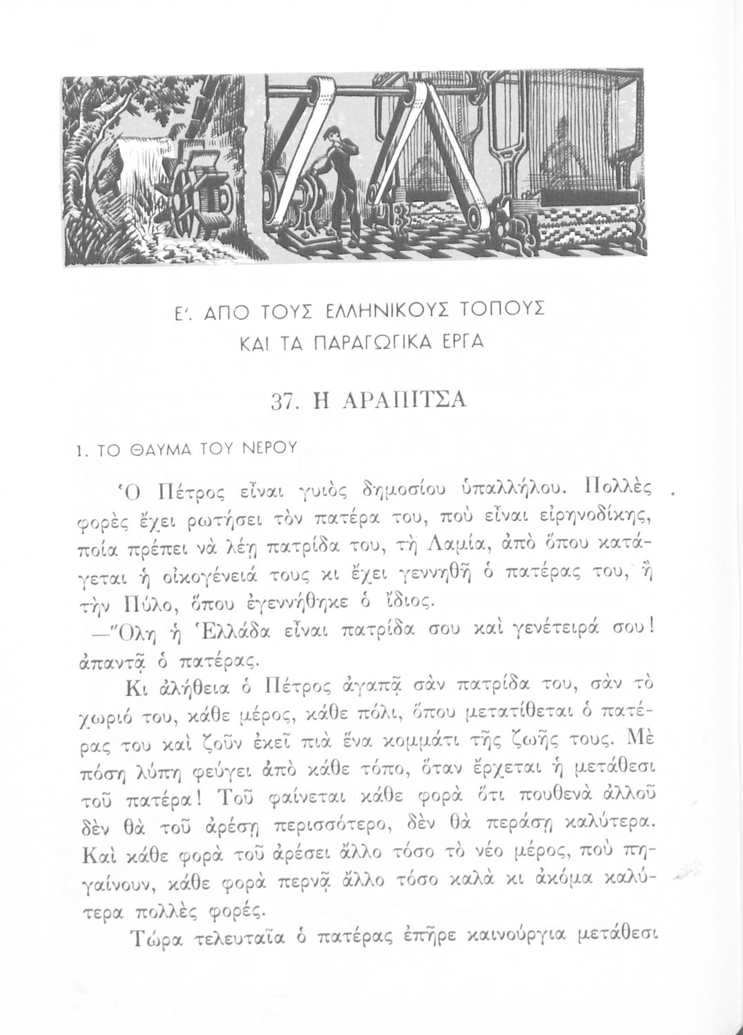 Αναγνωστικό Ε΄ Δημοτικού που περιέχει κείμενα εμπνευσμένα από την εθνική, κοινωνική και οικογενειακή ζωή και την ελληνική φύση, μυθολογία και ιστορία.
