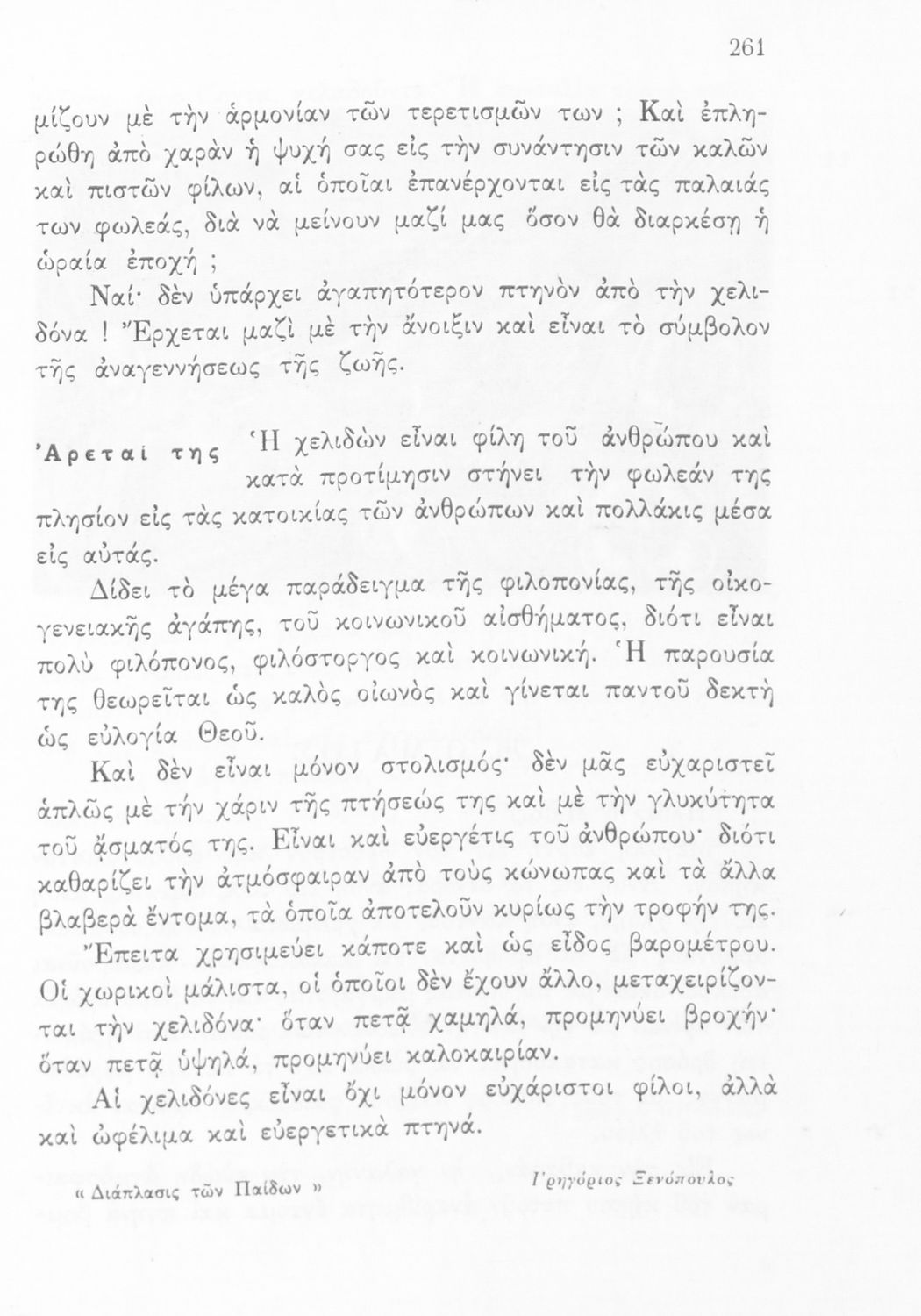 Αναγνωστικό Ε΄ Δημοτικού που περιέχει κείμενα εμπνευσμένα από την εθνική, κοινωνική και οικογενειακή ζωή και την ελληνική φύση, μυθολογία και ιστορία.