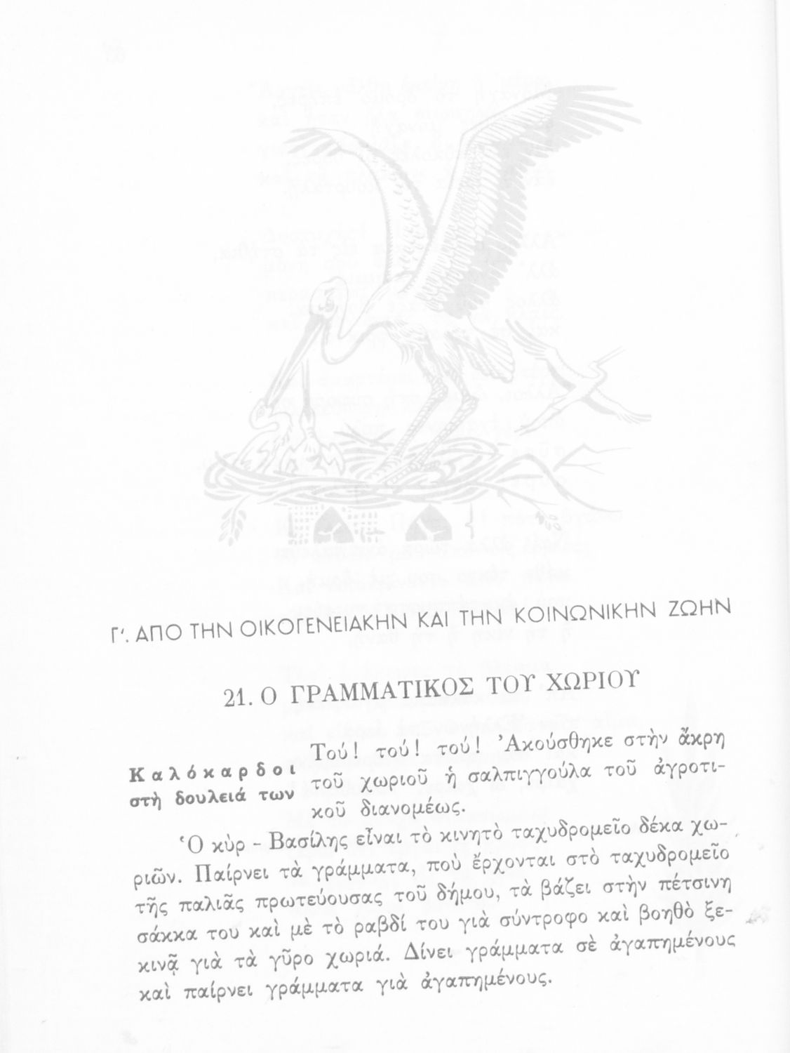 Αναγνωστικό Ε΄ Δημοτικού που περιέχει κείμενα εμπνευσμένα από την εθνική, κοινωνική και οικογενειακή ζωή και την ελληνική φύση, μυθολογία και ιστορία. Φέρει το σύμβολο της δικτατορίας.