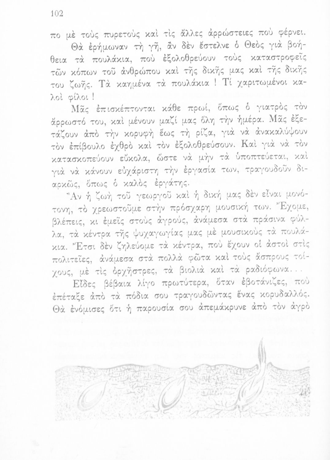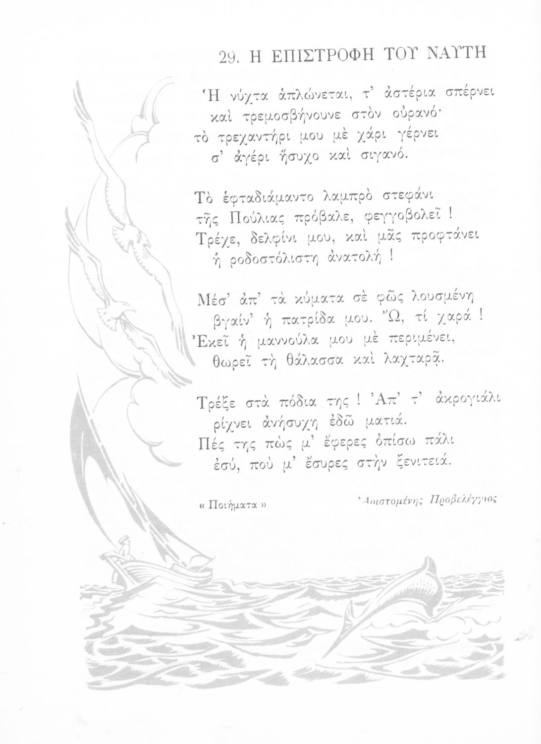 Αναγνωστικό Ε΄ Δημοτικού που περιέχει κείμενα εμπνευσμένα από την εθνική, κοινωνική και οικογενειακή ζωή και την ελληνική φύση, μυθολογία και ιστορία.