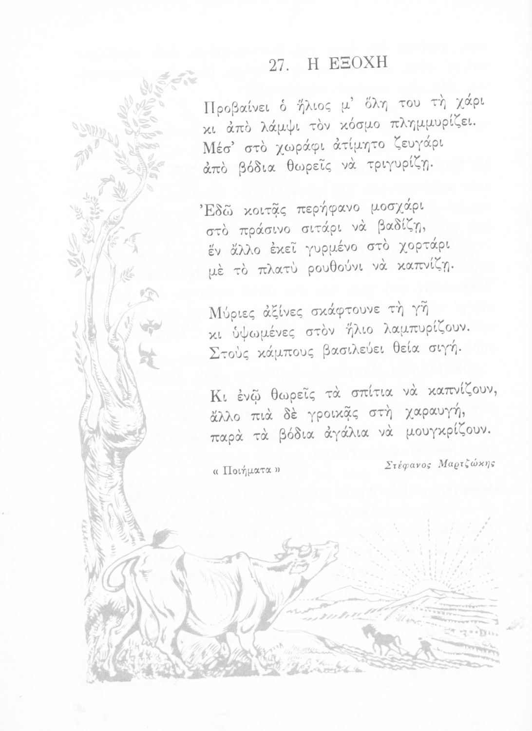 Αναγνωστικό Ε΄ Δημοτικού που περιέχει πεζά και ποιήματα εμπνευσμένα από τη θρησκευτική, εθνική, κοινωνική ζωή καθώς και από τις ασχολίες των Ελλήνων, την αρχαία και σύγχρονη ελληνική ιστορία και τον πολιτισμό.