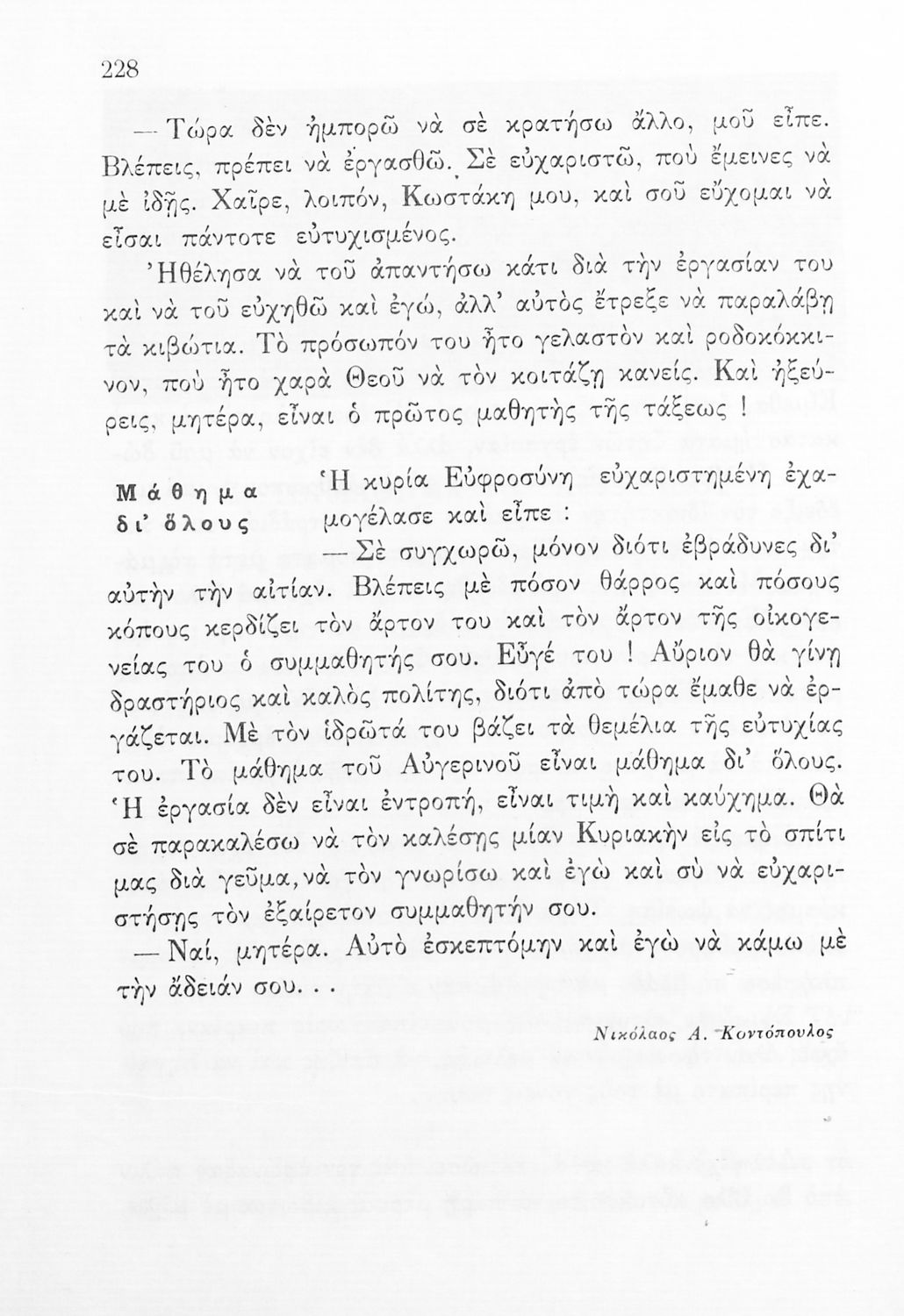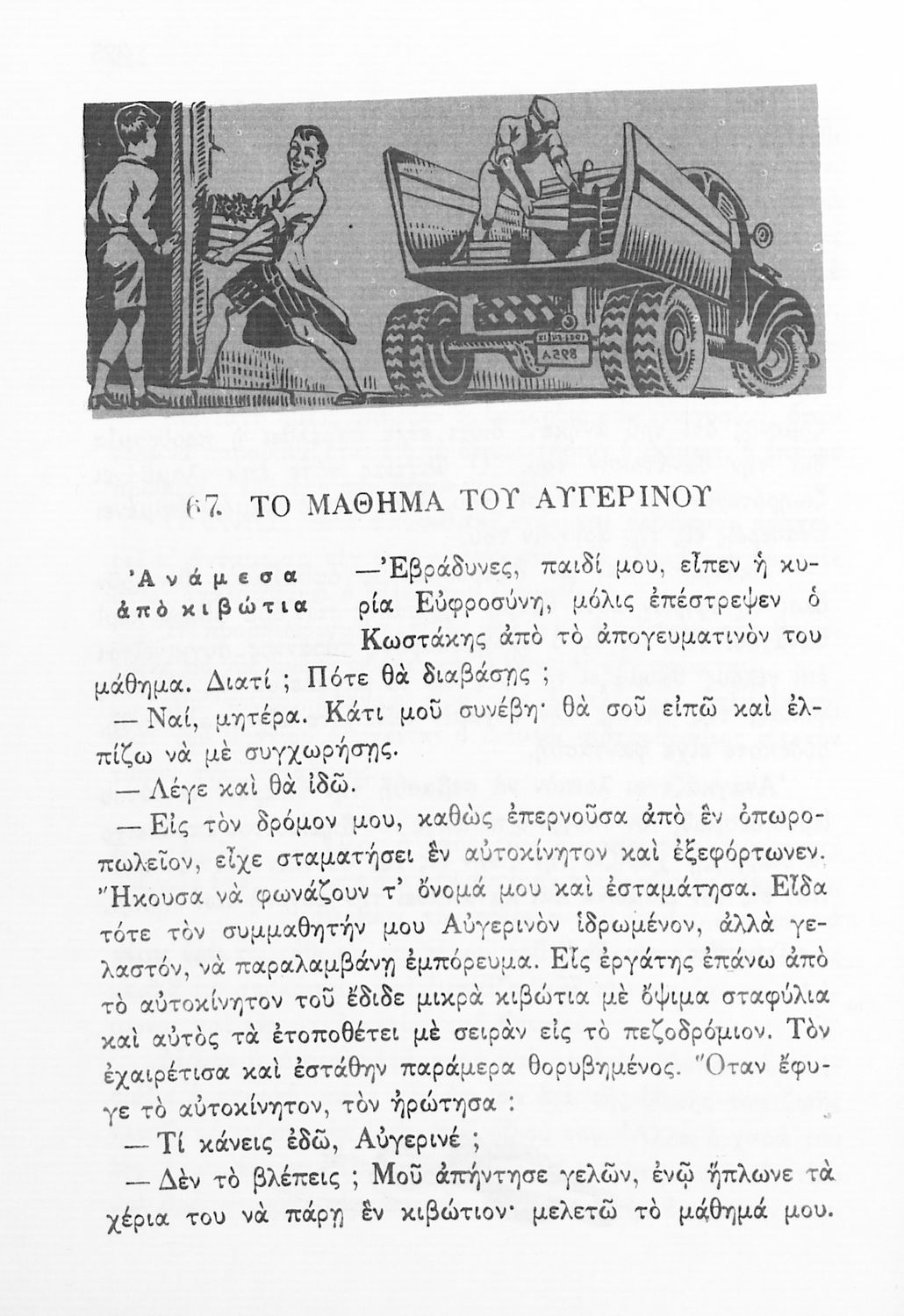 Αναγνωστικό Ε΄ Δημοτικού που περιέχει κείμενα εμπνευσμένα από την εθνική, κοινωνική και οικογενειακή ζωή και την ελληνική φύση, μυθολογία και ιστορία. Φέρει το σύμβολο της δικτατορίας.