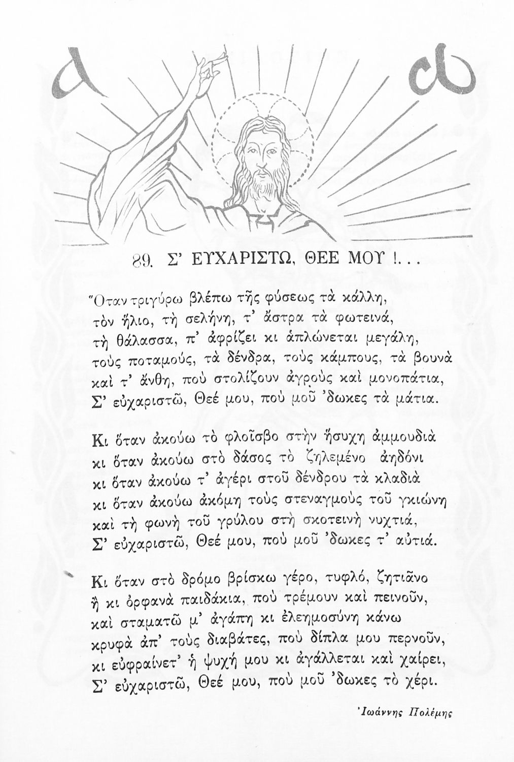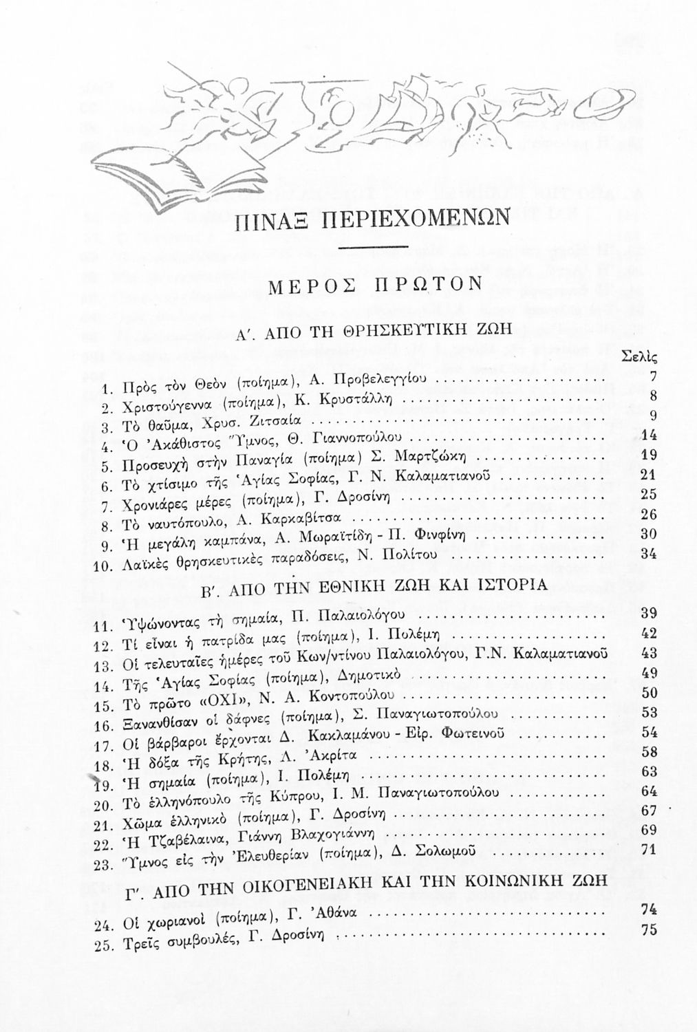 Αναγνωστικό Ε΄ Δημοτικού που περιέχει κείμενα εμπνευσμένα από την εθνική, κοινωνική και οικογενειακή ζωή και την ελληνική φύση, μυθολογία και ιστορία. Φέρει το σύμβολο της δικτατορίας.