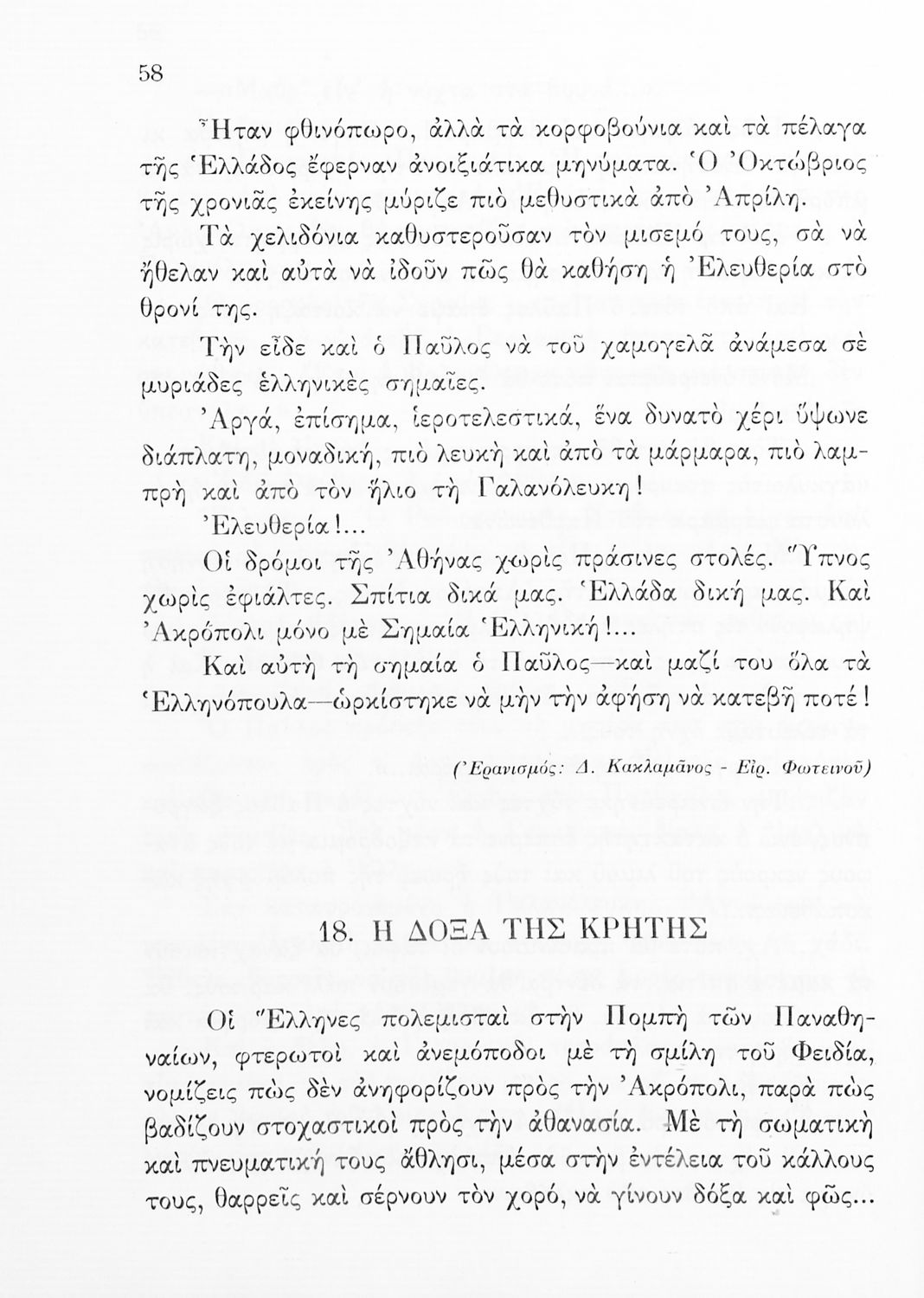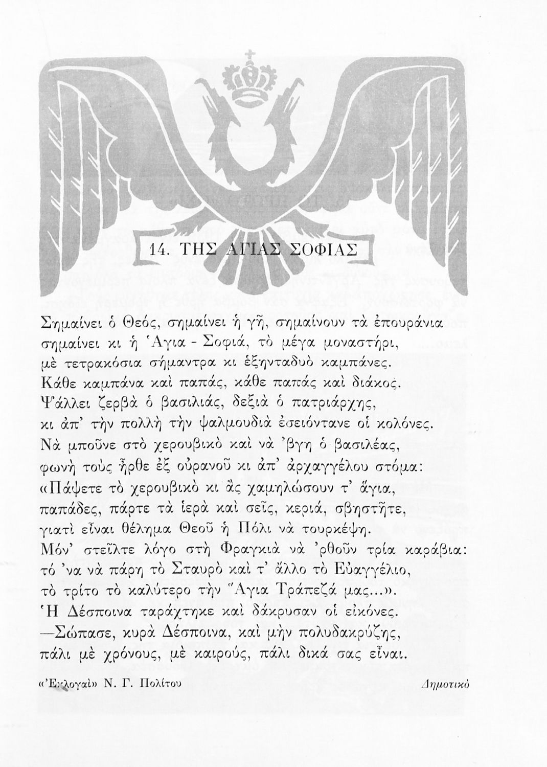 Αναγνωστικό Ε΄ Δημοτικού που περιέχει πεζά και ποιήματα εμπνευσμένα από τη θρησκευτική, εθνική, κοινωνική ζωή καθώς και από τις ασχολίες των Ελλήνων, την αρχαία και σύγχρονη ελληνική ιστορία και τον πολιτισμό.