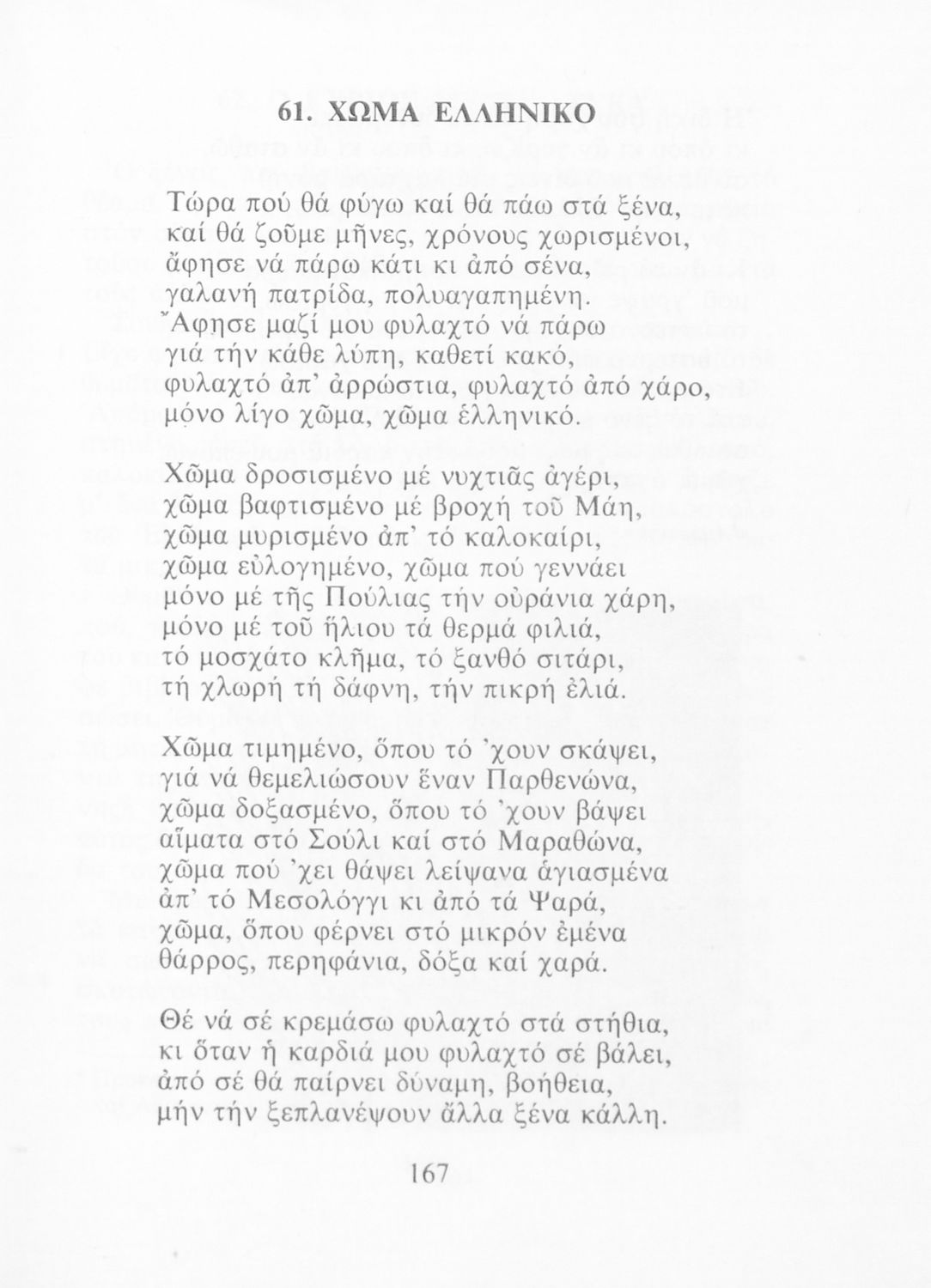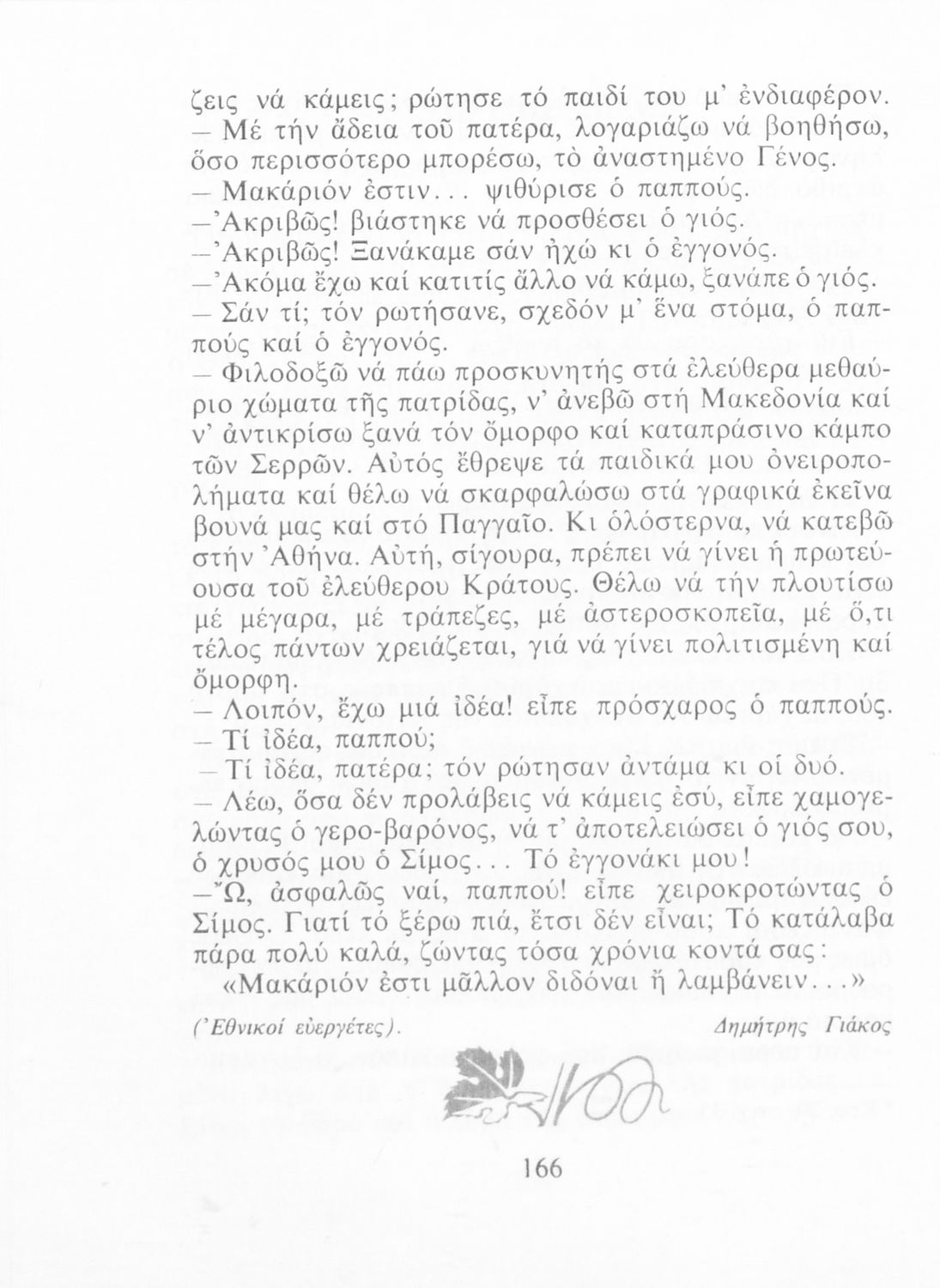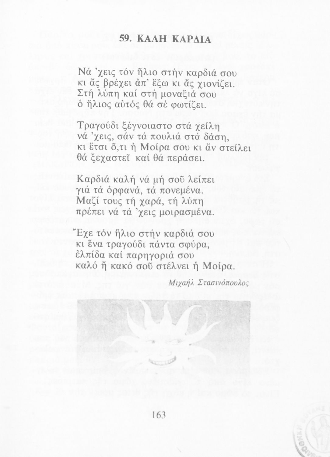 Αναγνωστικό για την Δ΄ τάξη του Δημοτικού. Περιλαμβάνει ένα κείμενο στο οποίο παρεμβάλλονται ποιήματα δημοτικά και Ελλήνων ποιητών.