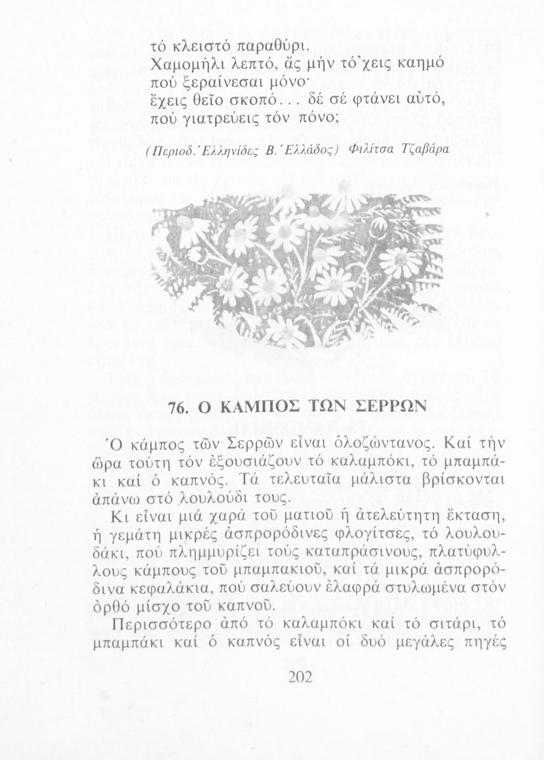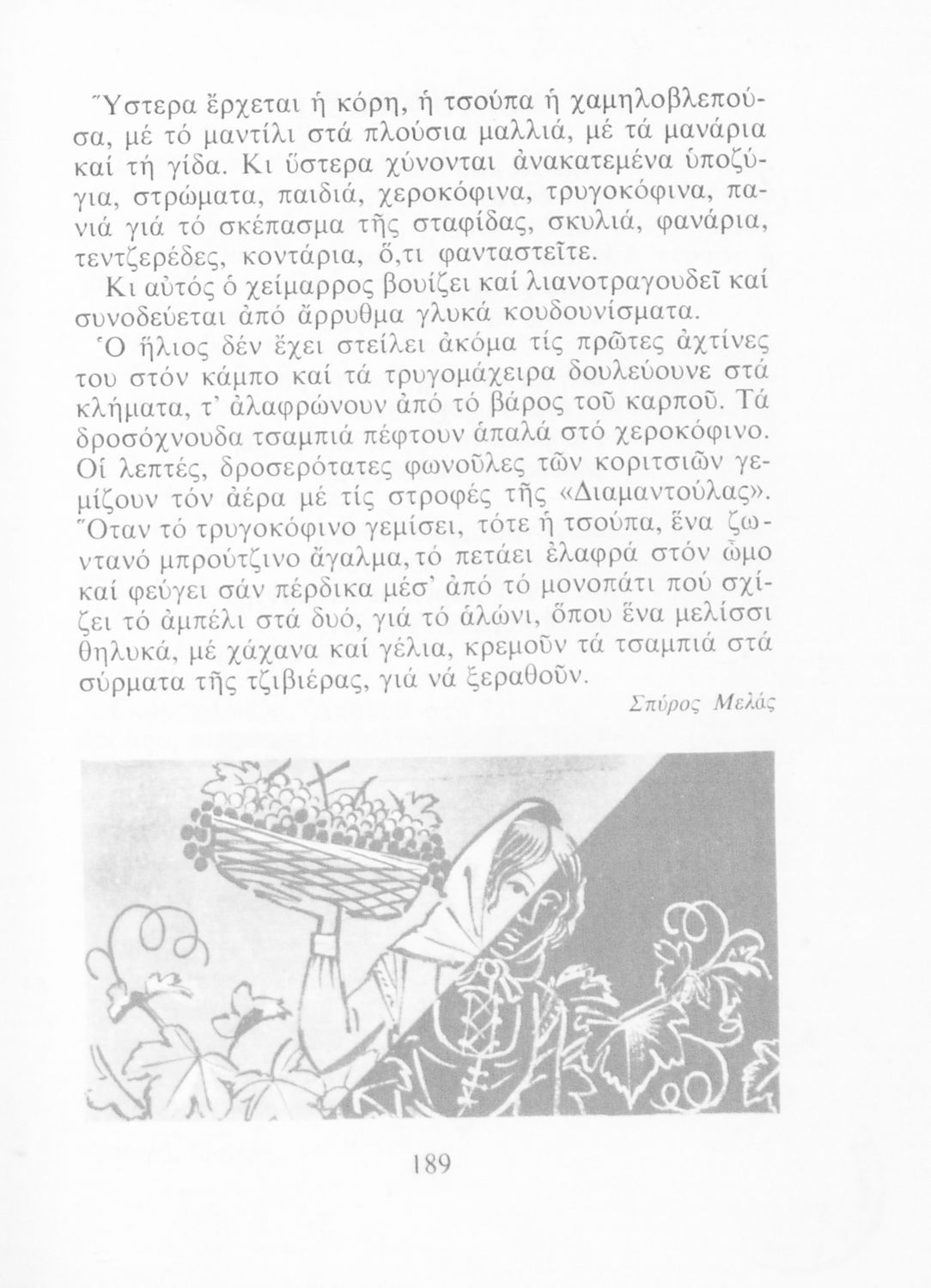 Αναγνωστικό Ε' Δημοτικού που περιλαμβάνει ποιήματα και πεζά εμπνευσμένα από τη ζωή στην ύπαιθρο, την εθνική, θρησκευτική και κοινωνική ζωή, η ζωή, τις ασχολίες των ανθρώπων, και την ελληνική φύση.