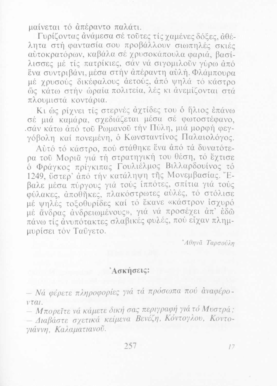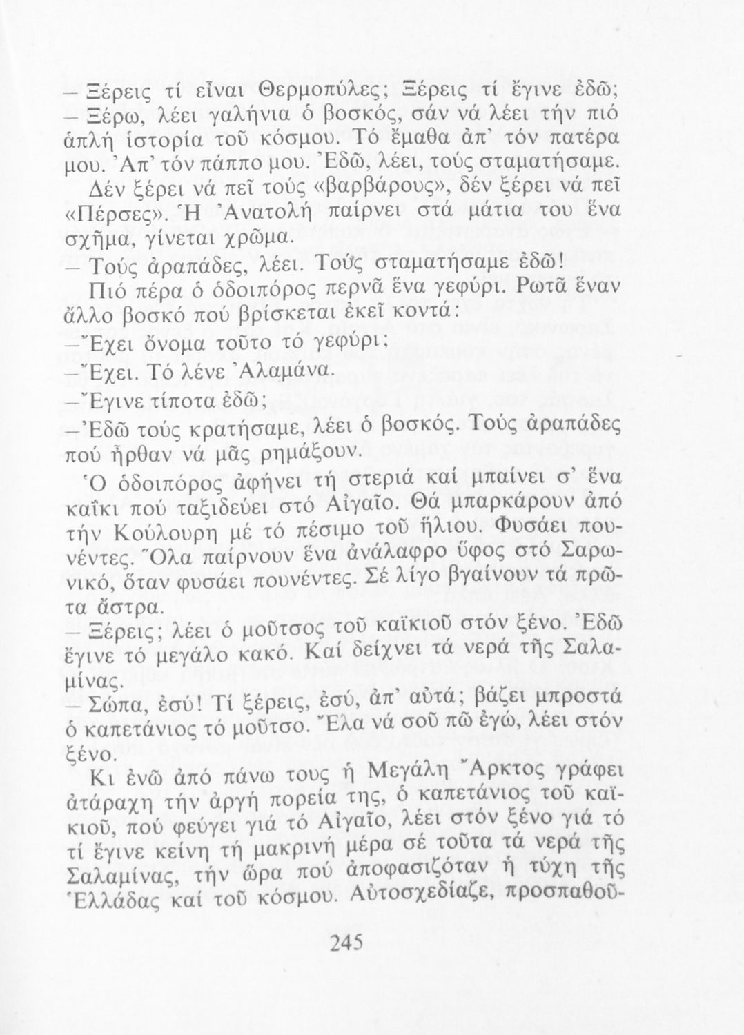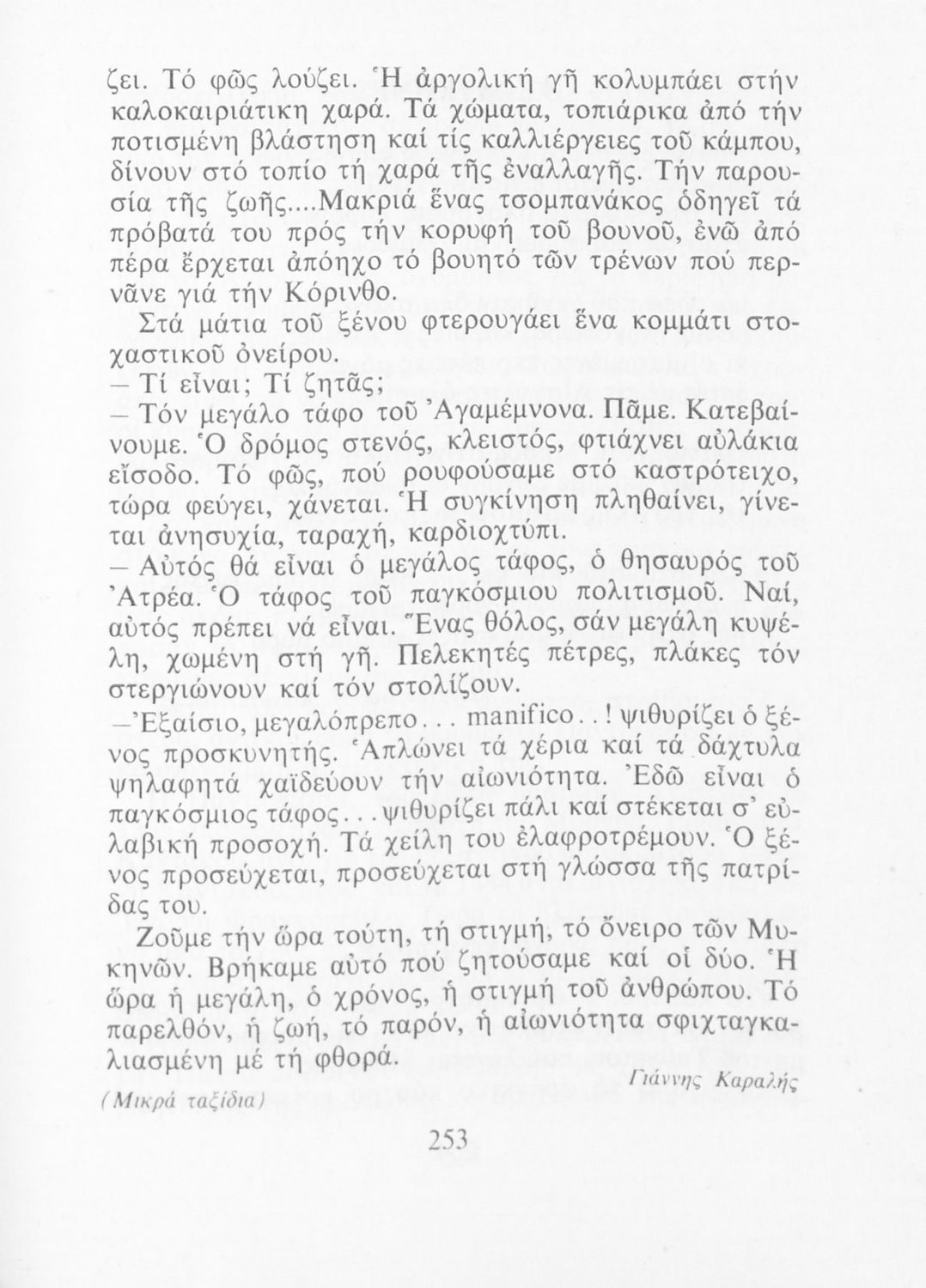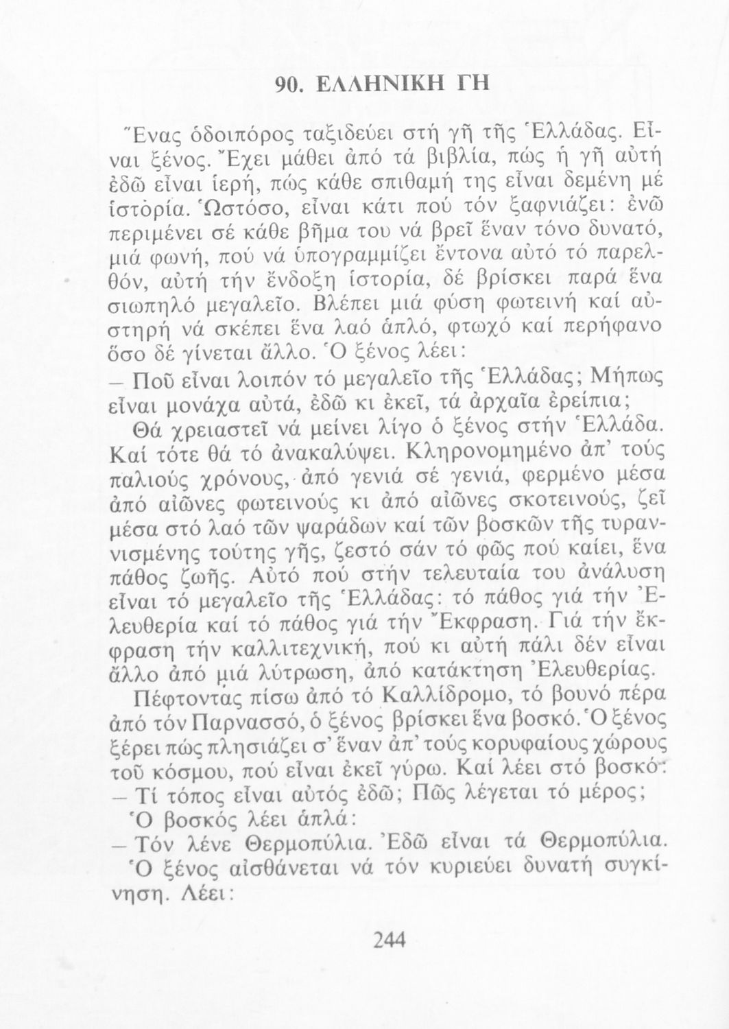 Αναγνωστικό για την Δ΄ τάξη του Δημοτικού. Περιλαμβάνει ένα κείμενο στο οποίο παρεμβάλλονται ποιήματα δημοτικά και Ελλήνων ποιητών.