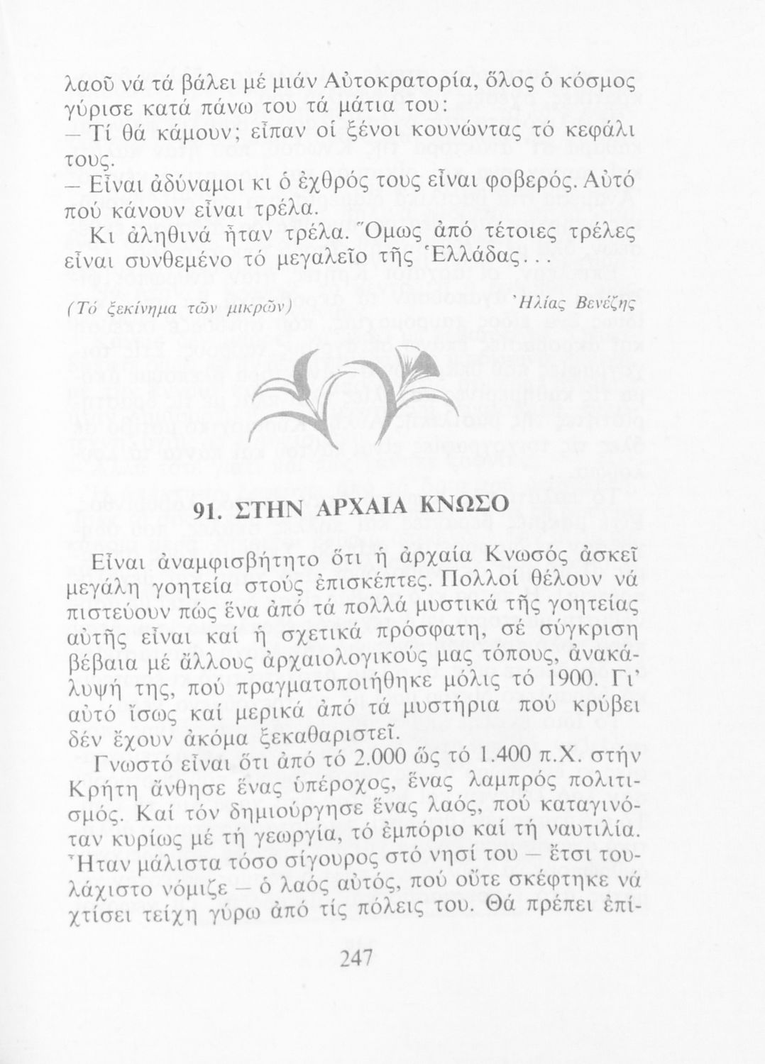 Αναγνωστικό Ε΄ Δημοτικού που περιέχει πεζά και ποιήματα εμπνευσμένα από τη θρησκευτική, εθνική, κοινωνική ζωή καθώς και από τις ασχολίες των Ελλήνων, την αρχαία και σύγχρονη ελληνική ιστορία και τον πολιτισμό.