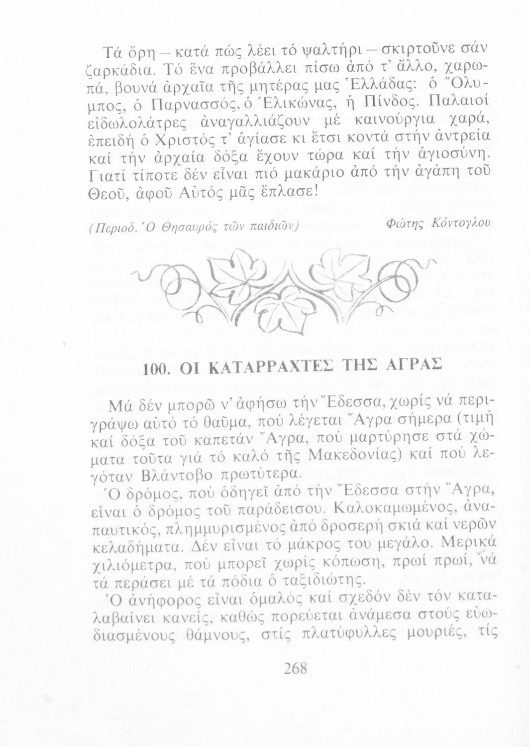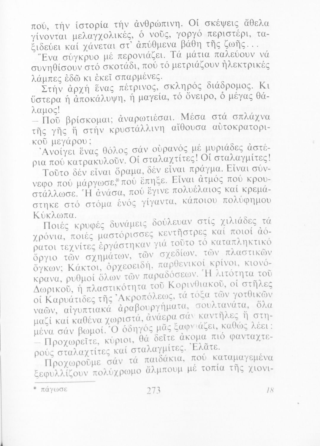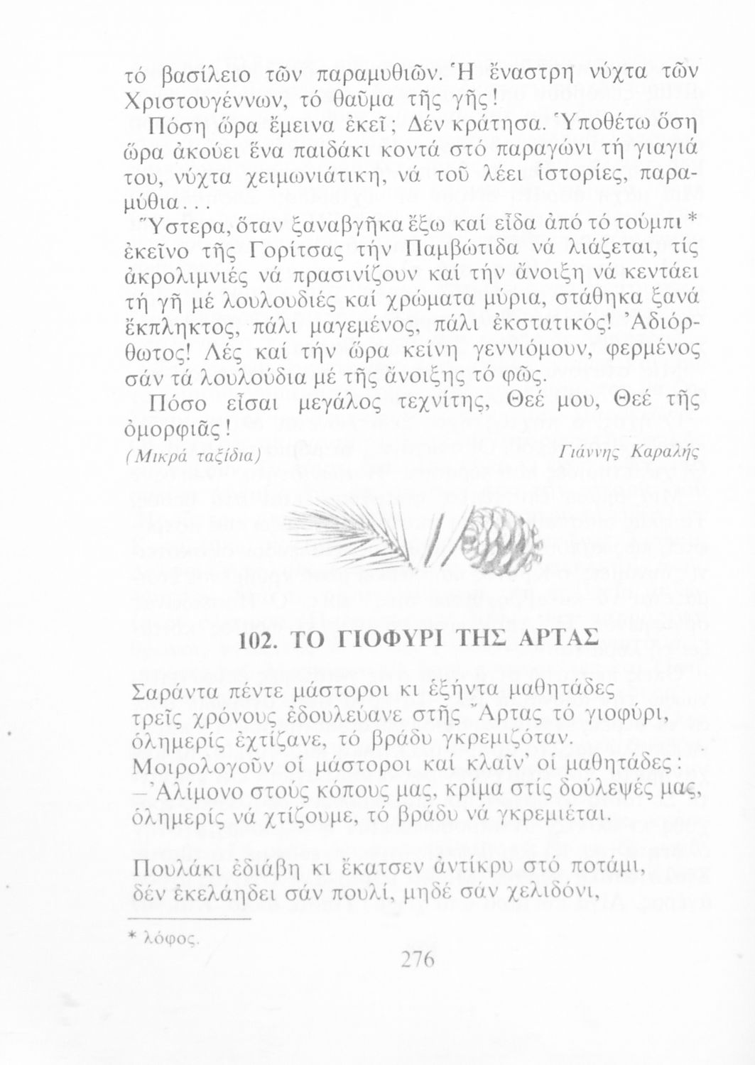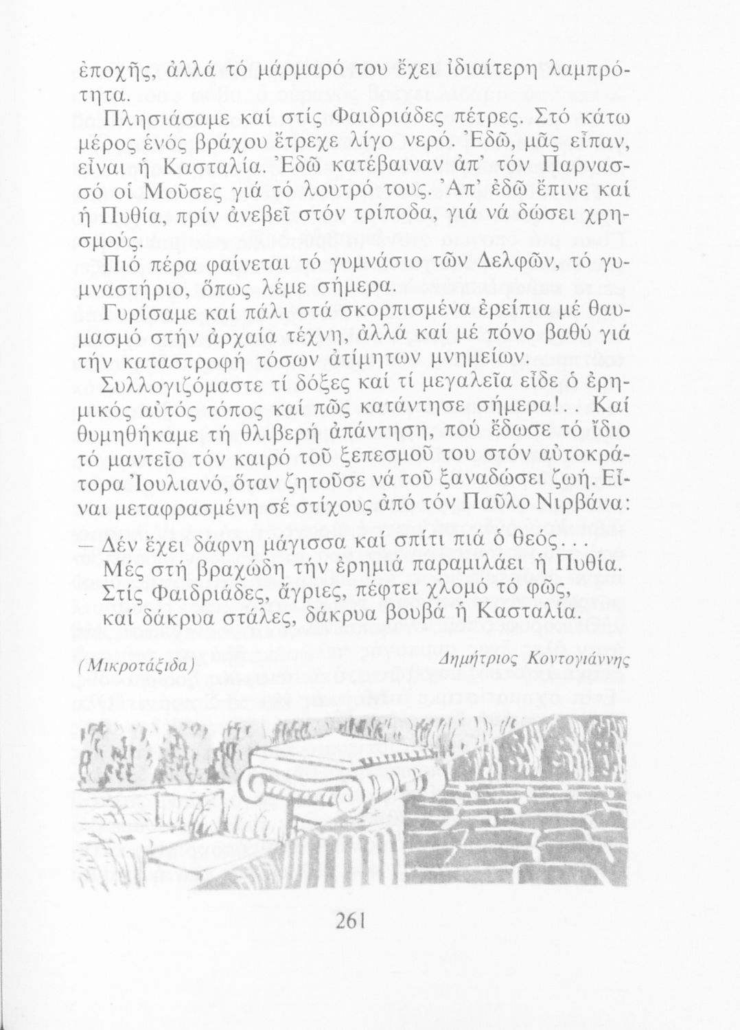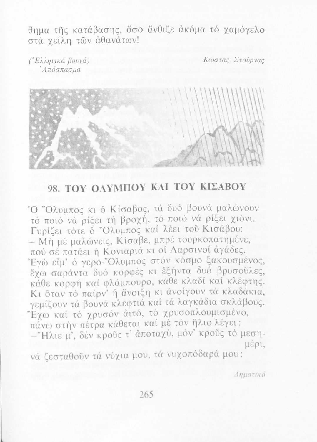 Αναγνωστικό για την Δ΄ τάξη του Δημοτικού. Περιλαμβάνει ένα κείμενο στο οποίο παρεμβάλλονται ποιήματα δημοτικά και Ελλήνων ποιητών.