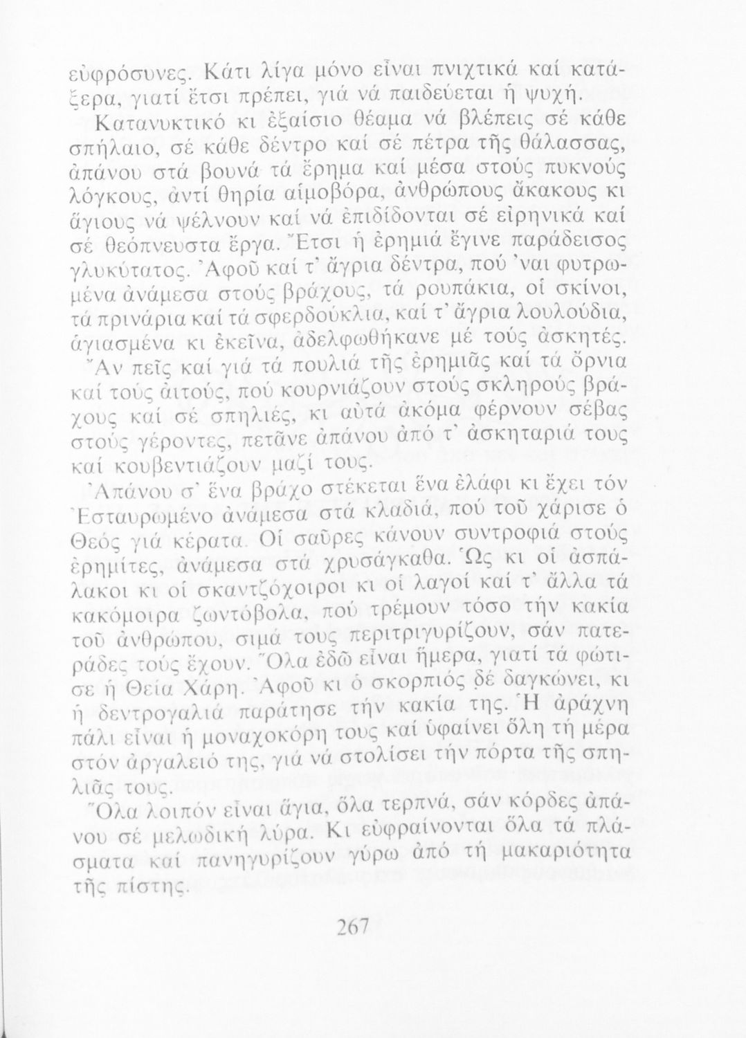 Αναγνωστικό Ε' Δημοτικού που περιλαμβάνει ποιήματα και πεζά εμπνευσμένα από τη ζωή στην ύπαιθρο, την εθνική, θρησκευτική και κοινωνική ζωή, η ζωή, τις ασχολίες των ανθρώπων, και την ελληνική φύση.