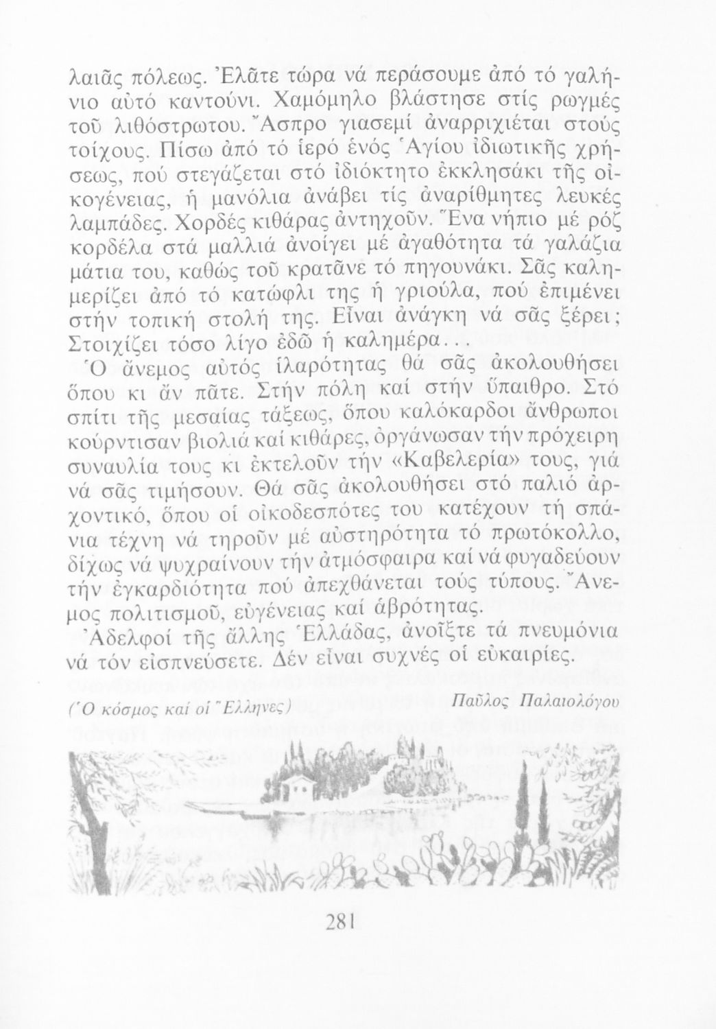 Αναγνωστικό για τους μαθητές της ΣΤ΄ τάξης του Δημοτικού που περιέχει πεζά και ποιήματα Ελλήνων λογοτεχνών για την εκμάθηση της Ελληνικής γλώσσας.