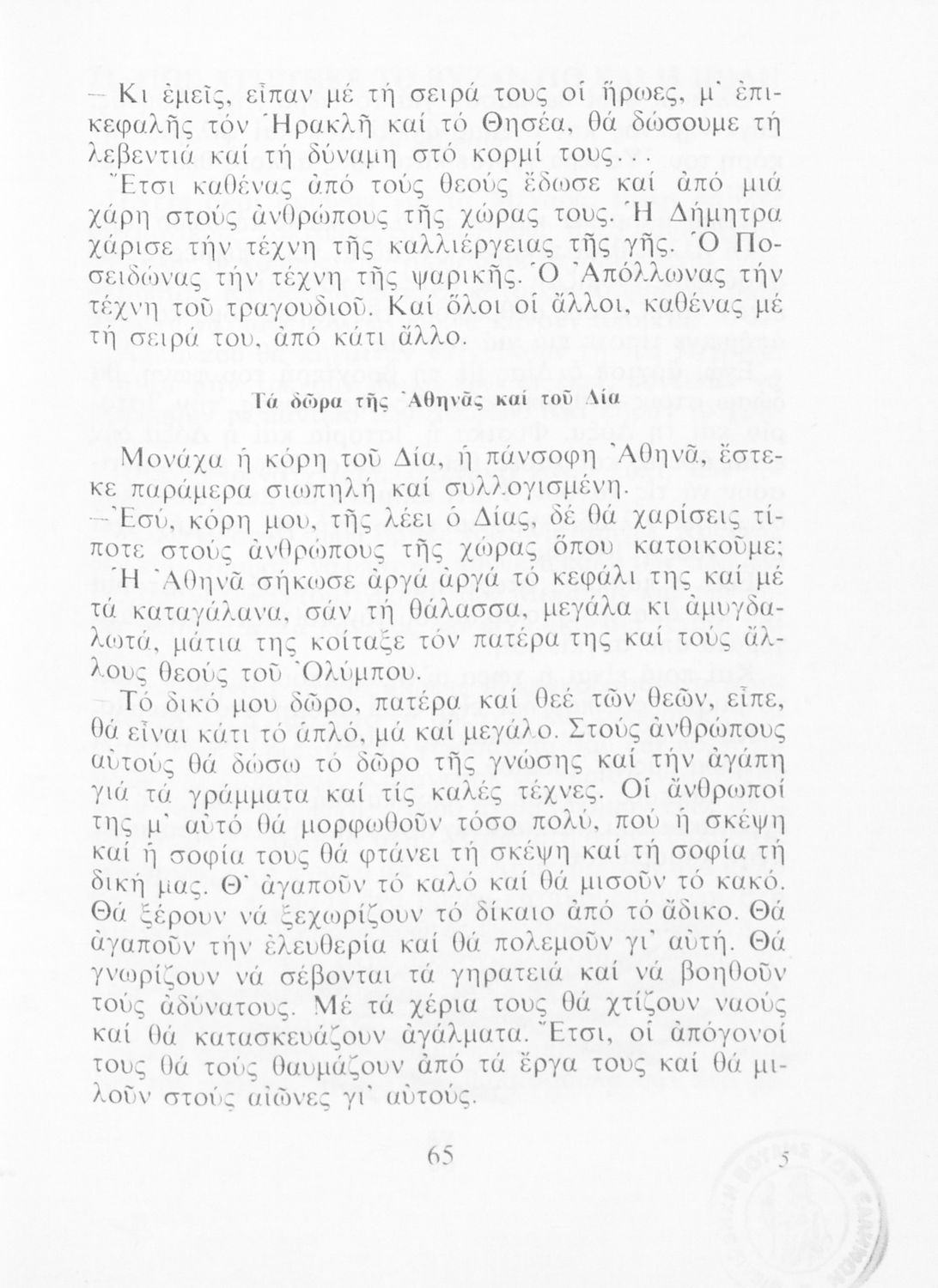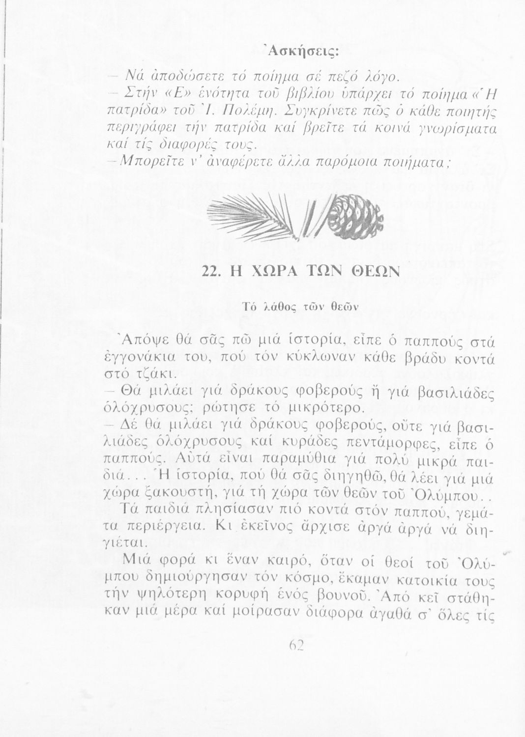 Αναγνωστικό Ε΄ Δημοτικού που περιέχει πεζά και ποιήματα εμπνευσμένα από τη θρησκευτική, εθνική, κοινωνική ζωή καθώς και από τις ασχολίες των Ελλήνων, την αρχαία και σύγχρονη ελληνική ιστορία και τον πολιτισμό.