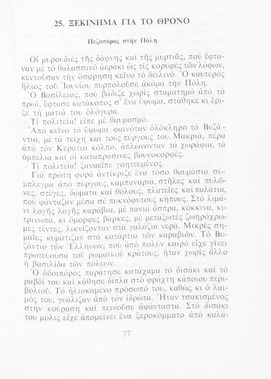Αναγνωστικό Ε΄ Δημοτικού που περιλαμβάνει εξιστορήσεις πολεμικών γεγονότων εμπνευσμένες από την περίοδο του Βυζαντίου και των Βαλκανικών Πολέμων.