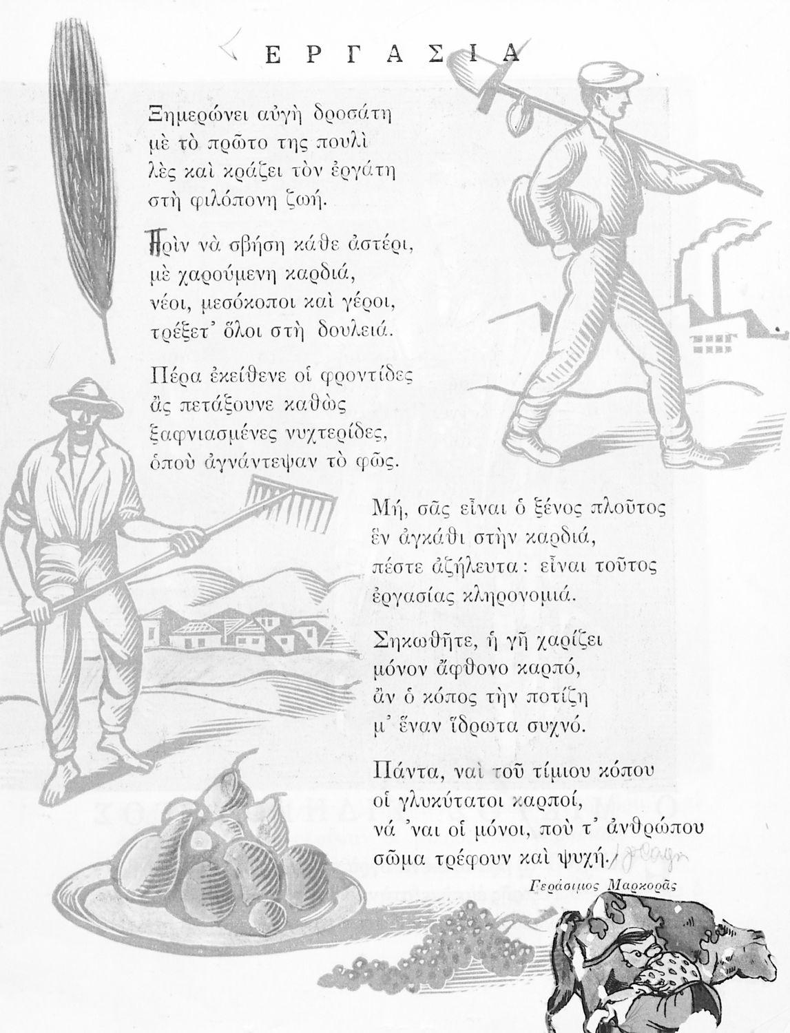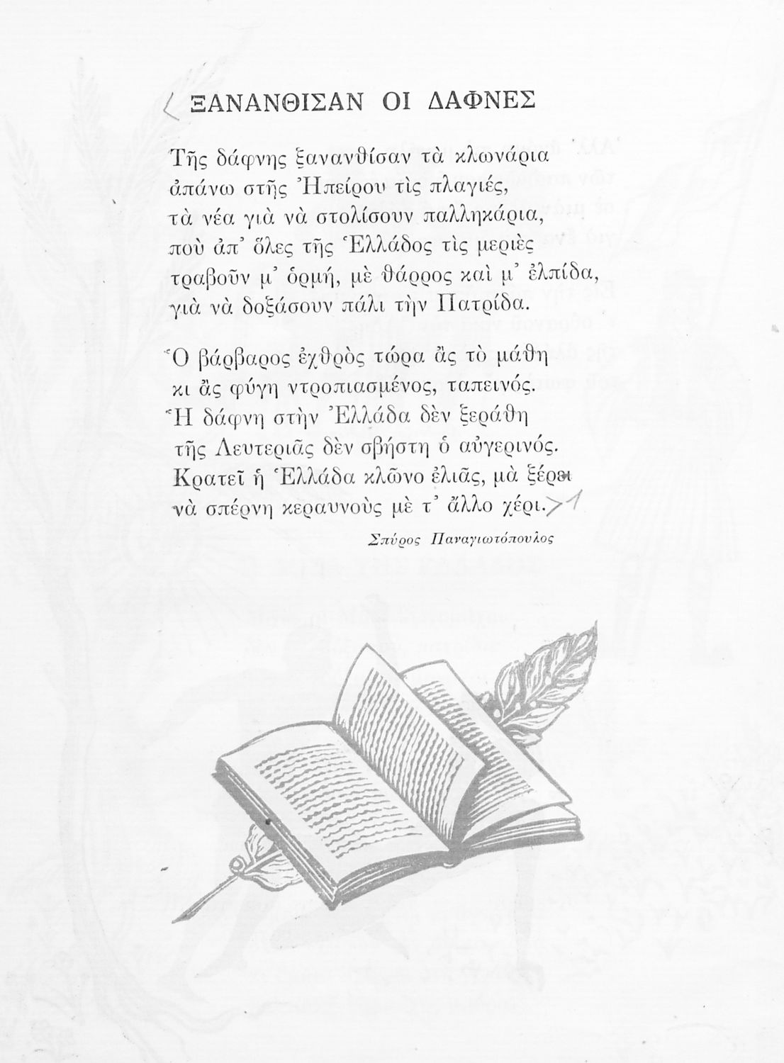 Αναγνωστικό ΣΤ΄ Δημοτικού που περιλαμβάνει ποιήματα και πεζά με θέματα από την οικογενειακή, κοινωνική και θρησκευτική ζωή των Ελλήνων και την ελληνική φύση και ιστορία.