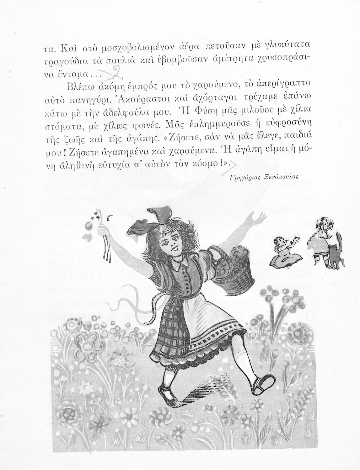 Αναγνωστικό ΣΤ' Δημοτικού που περιλαμβάνει ποιήματα και πεζά με θέματα από την οικογενειακή, κοινωνική και θρησκευτική ζωή των ελλήνων και την ελληνική φύση και ιστορία.