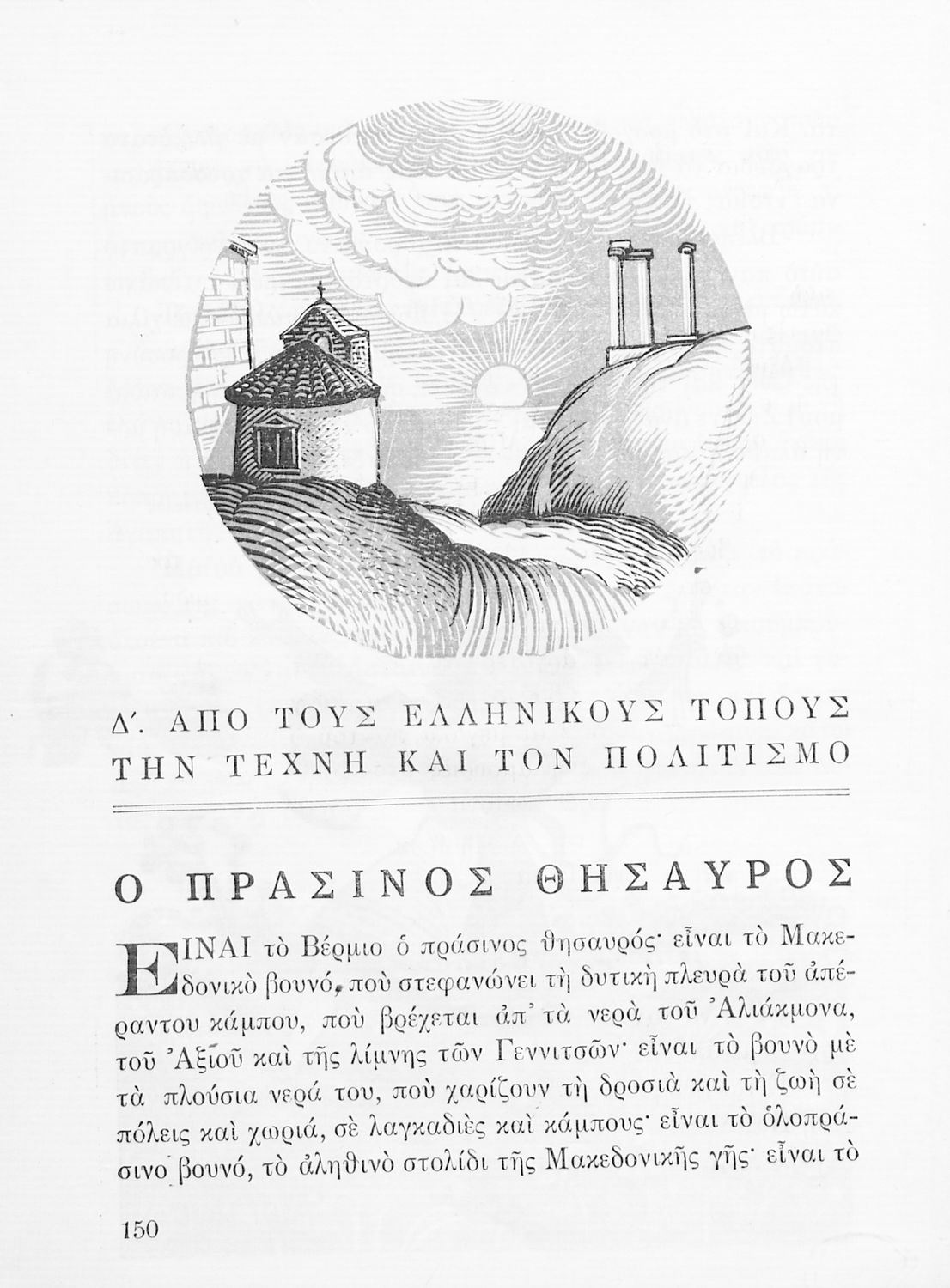 Αναγνωστικό ΣΤ΄ Δημοτικού που περιλαμβάνει θέματα από τις ελληνικές παραδόσεις και μύθους, την ελληνική φύση και θάλασσα και το τρίπτυχο "Πατρίς-θρησκεία-οικογένειαα".