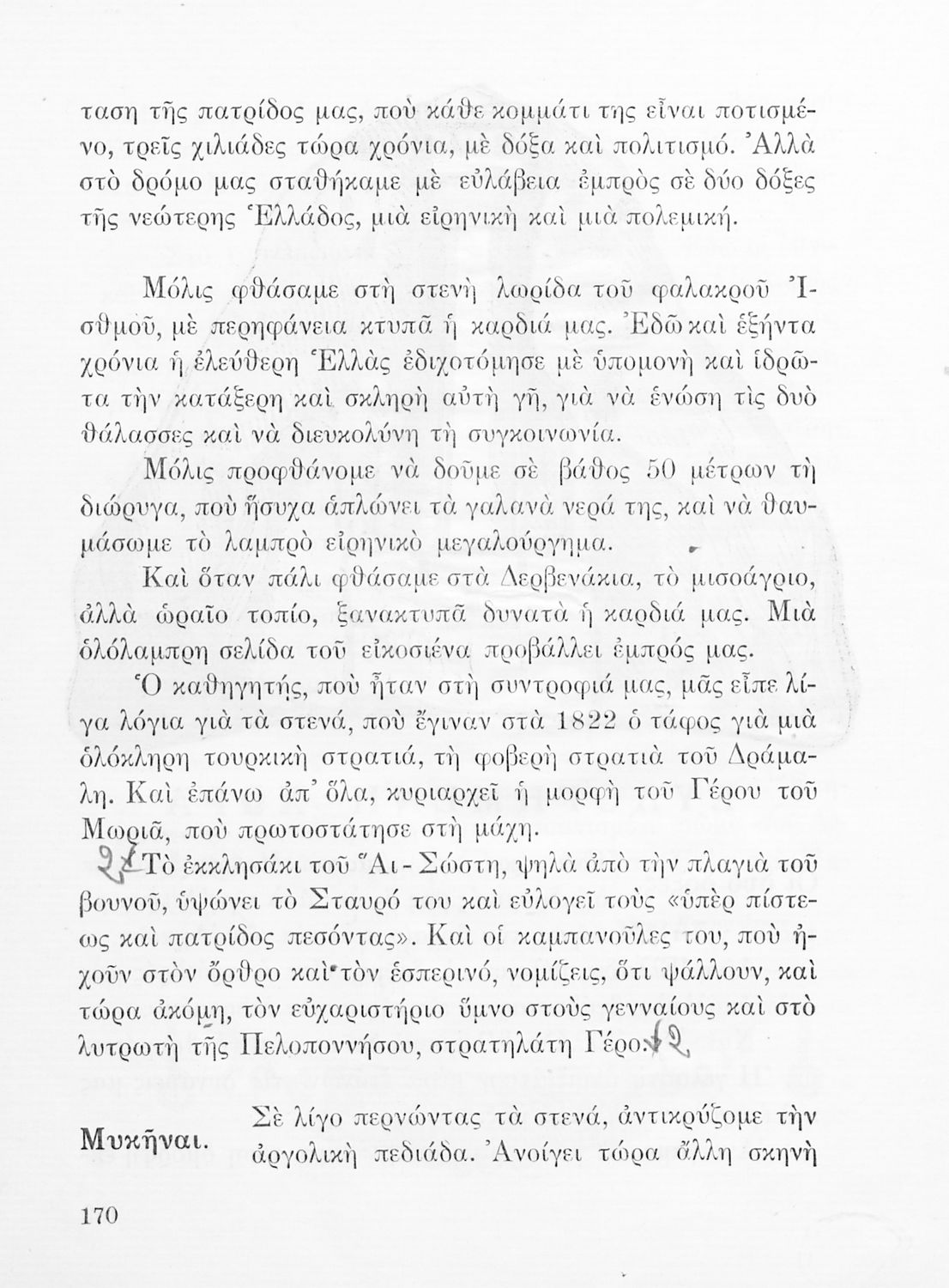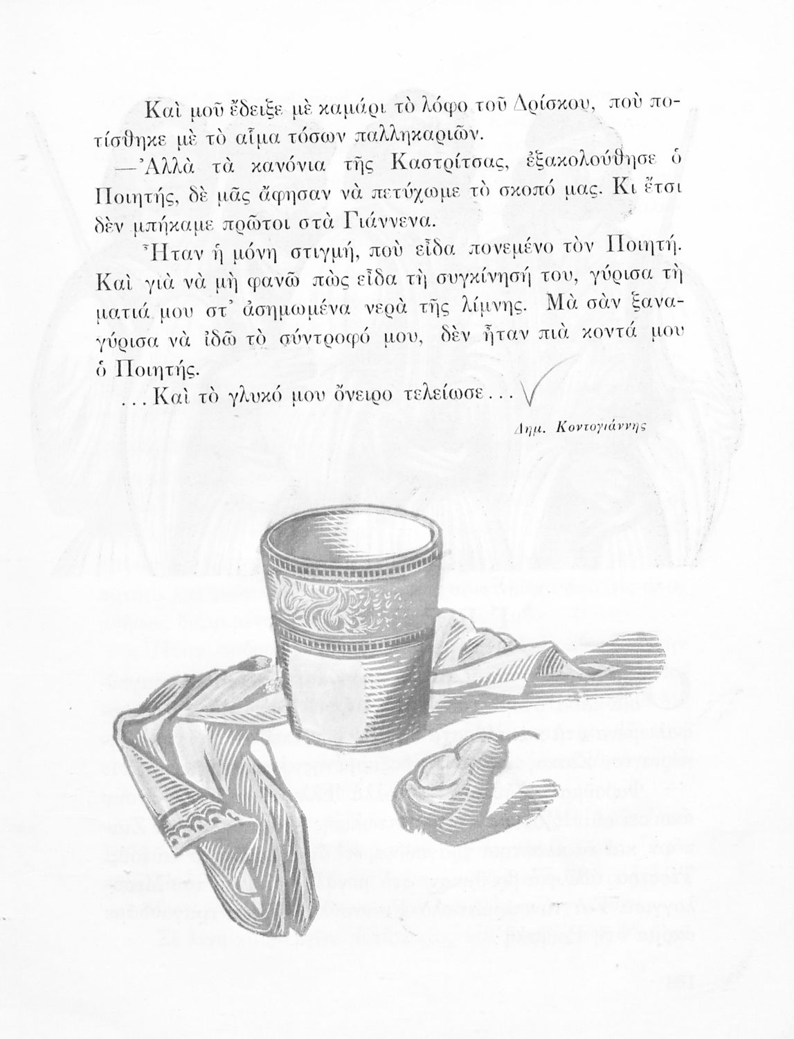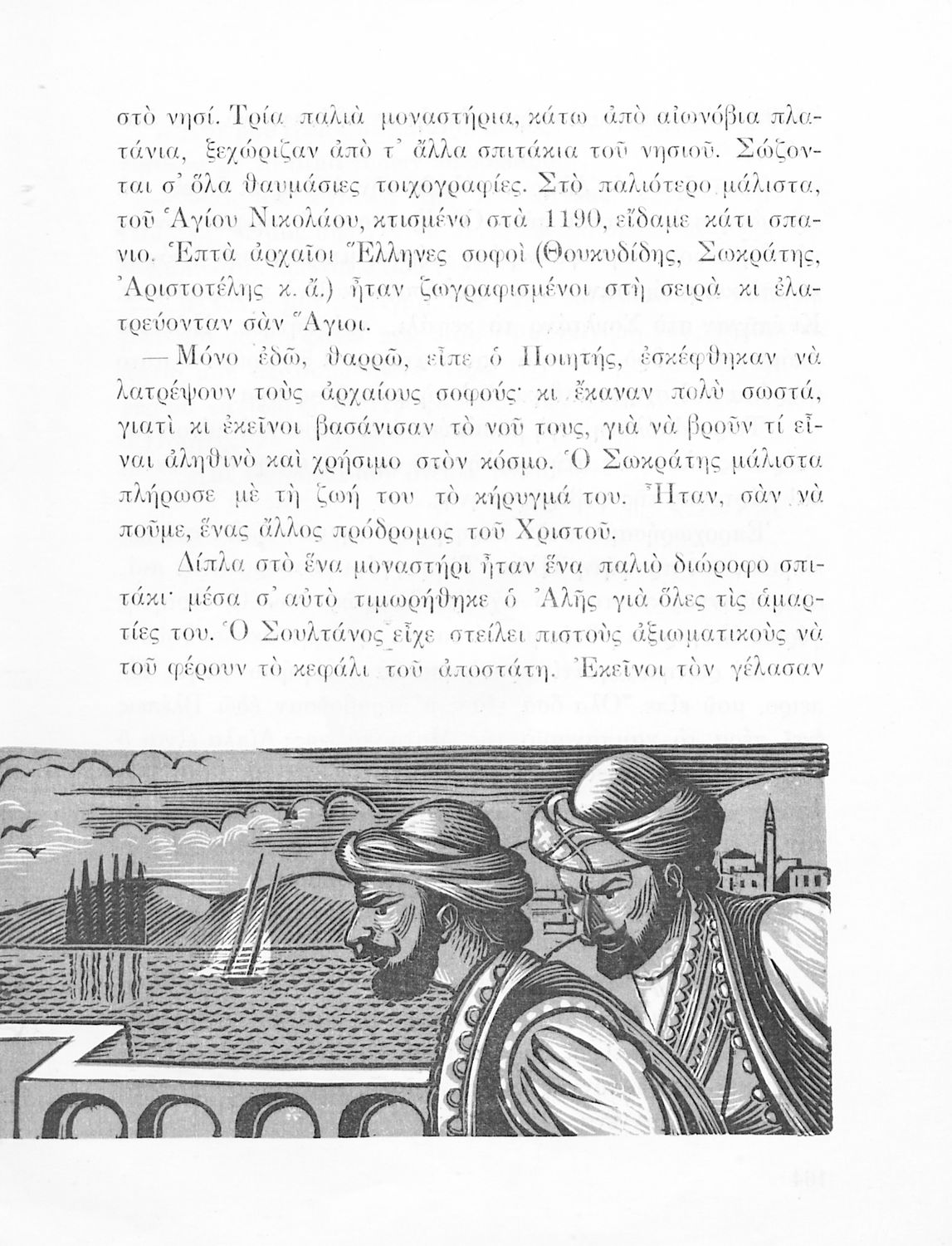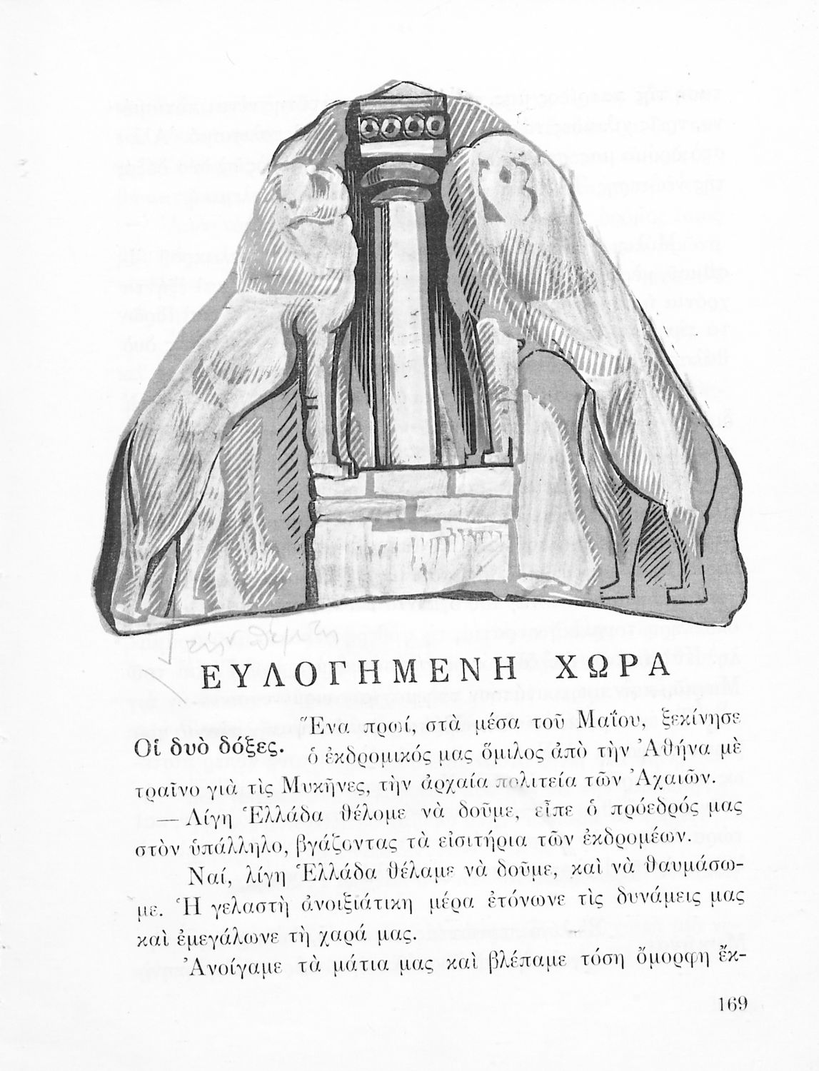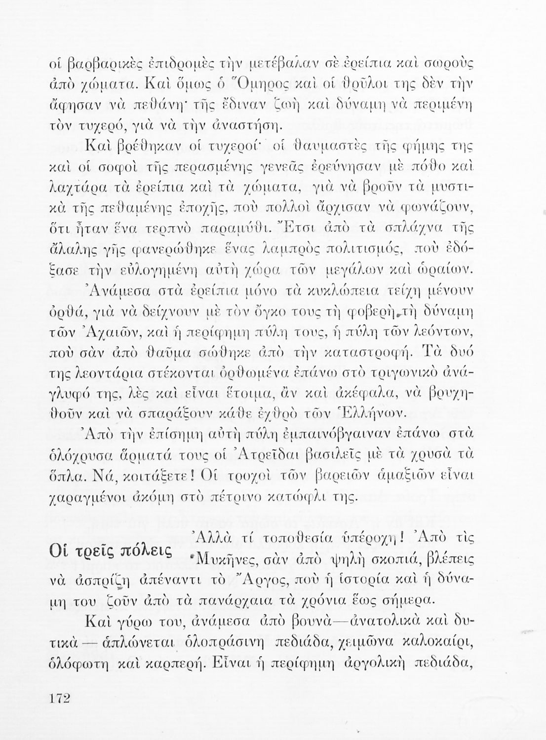 Αναγνωστικό ΣΤ΄ Δημοτικού που περιλαμβάνει θέματα από τις ελληνικές παραδόσεις και μύθους, την ελληνική φύση και θάλασσα και το τρίπτυχο "Πατρίς-θρησκεία-οικογένειαα".