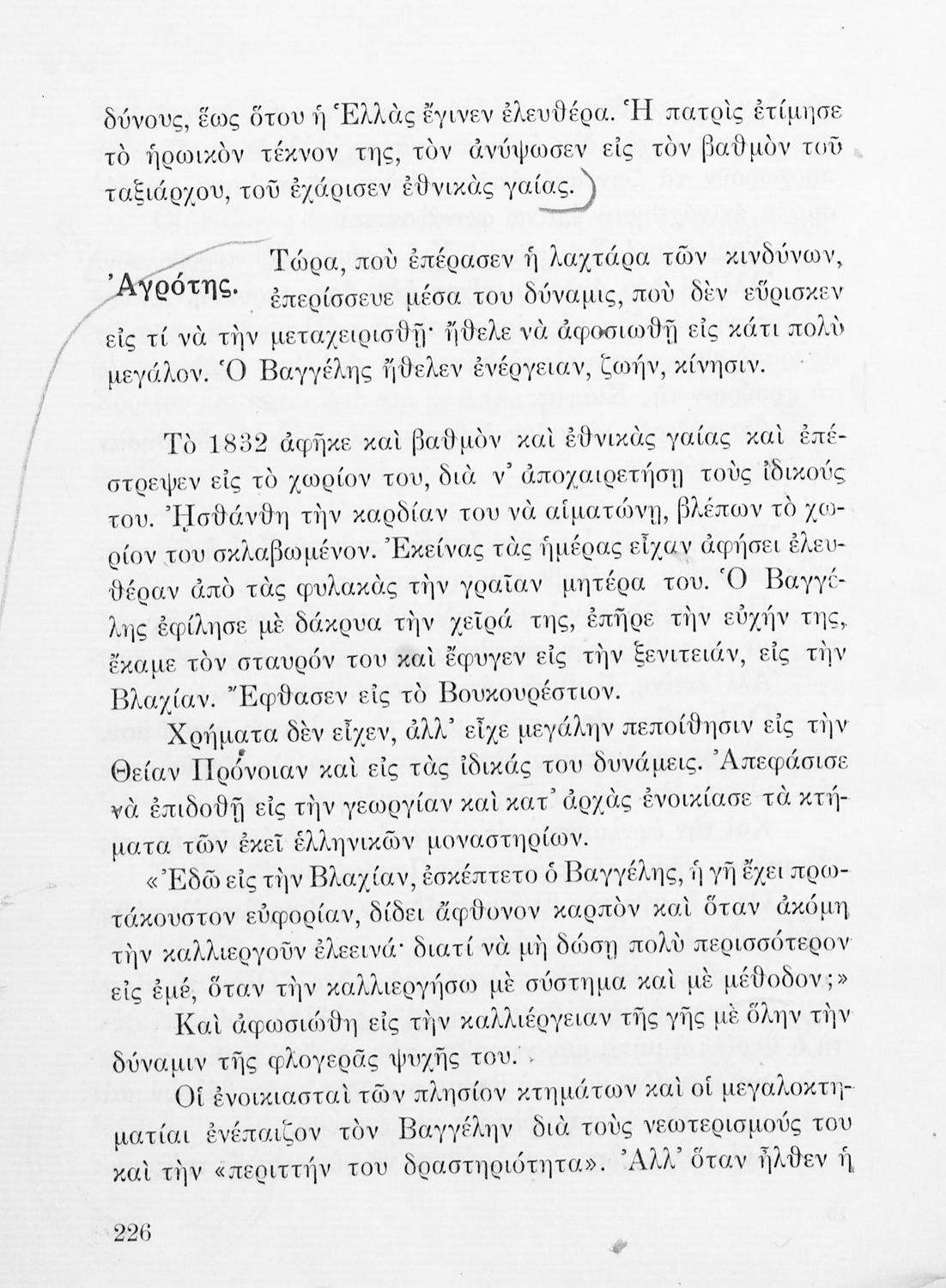 Αναγνωστικό ΣΤ΄ Δημοτικού που περιέχει πεζά και ποιήματα εμπνευσμένα από τη θρησκευτική, εθνική, κοινωνική και ατομική ζωή, την ελληνική φύση, ιστορία και μυθολογία και την υγιεινή.