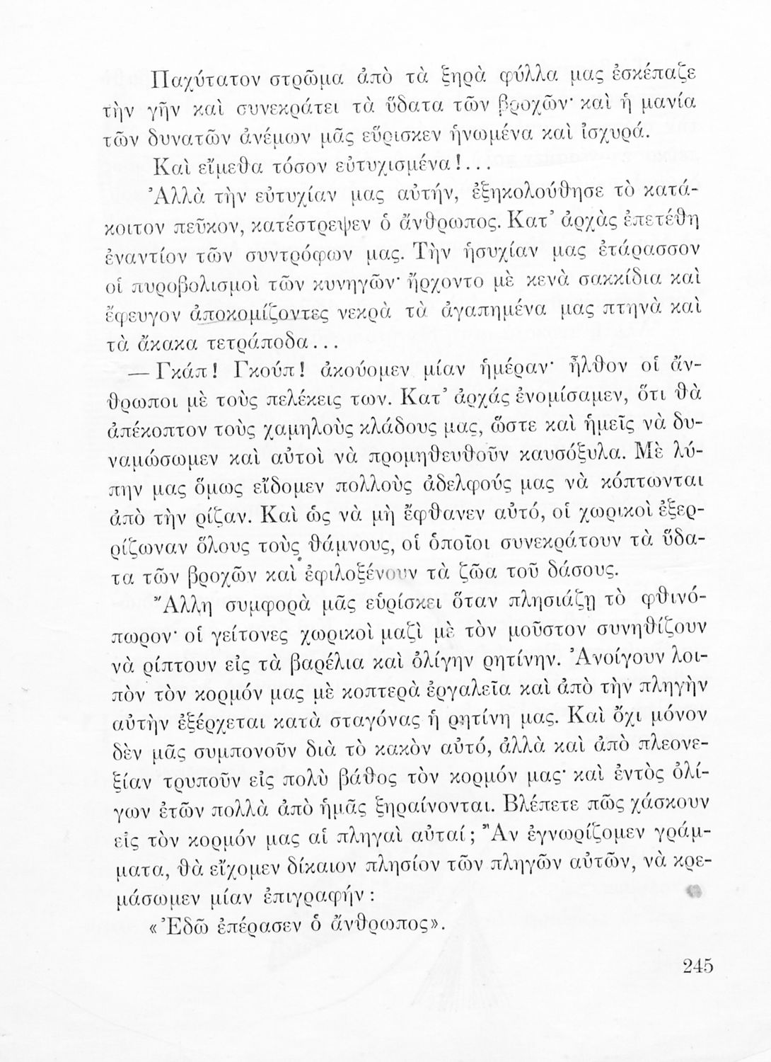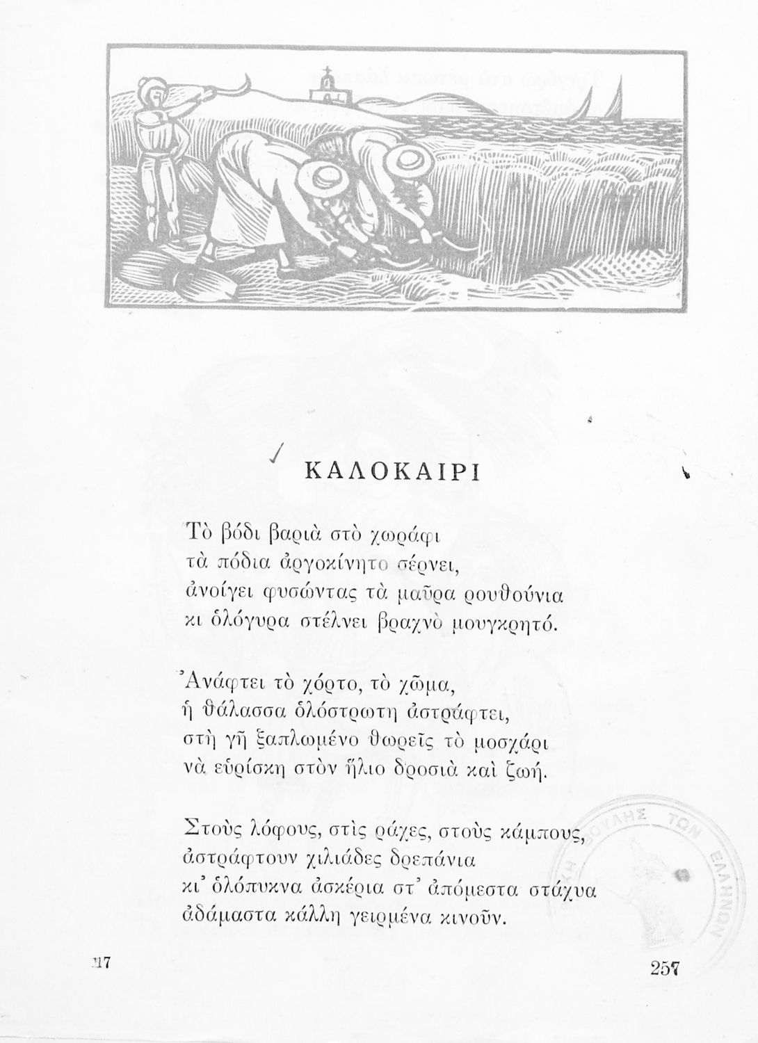 Αναγνωστικό ΣΤ΄ Δημοτικού που περιέχει πεζά και ποιήματα εμπνευσμένα από τη θρησκευτική, εθνική, κοινωνική και ατομική ζωή, την ελληνική φύση, ιστορία και μυθολογία και την υγιεινή.