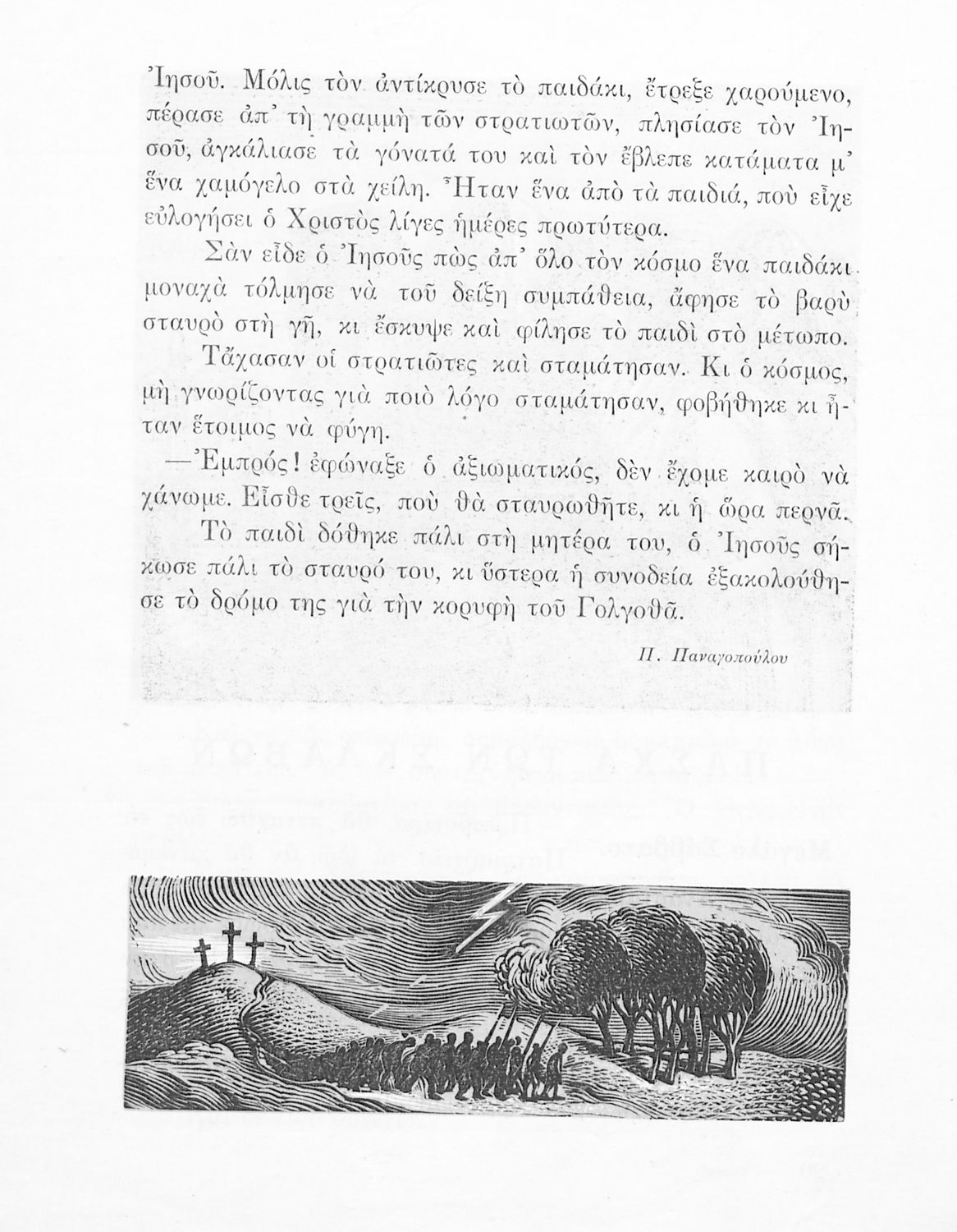 Αναγνωστικό ΣΤ΄ Δημοτικού που περιέχει πεζά και ποιήματα εμπνευσμένα από τη θρησκευτική, εθνική, κοινωνική και ατομική ζωή, την ελληνική φύση, ιστορία και μυθολογία και την υγιεινή.