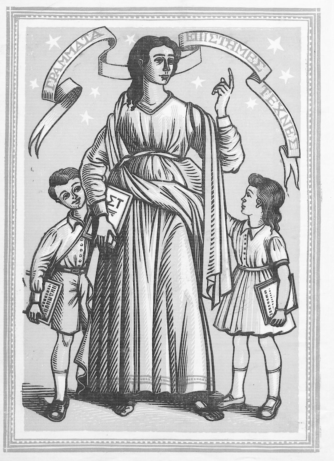 Αναγνωστικό ΣΤ΄ Δημοτικού που περιλαμβάνει θέματα από τις ελληνικές παραδόσεις και μύθους, την ελληνική φύση και θάλασσα και το τρίπτυχο "Πατρίς-θρησκεία-οικογένειαα".