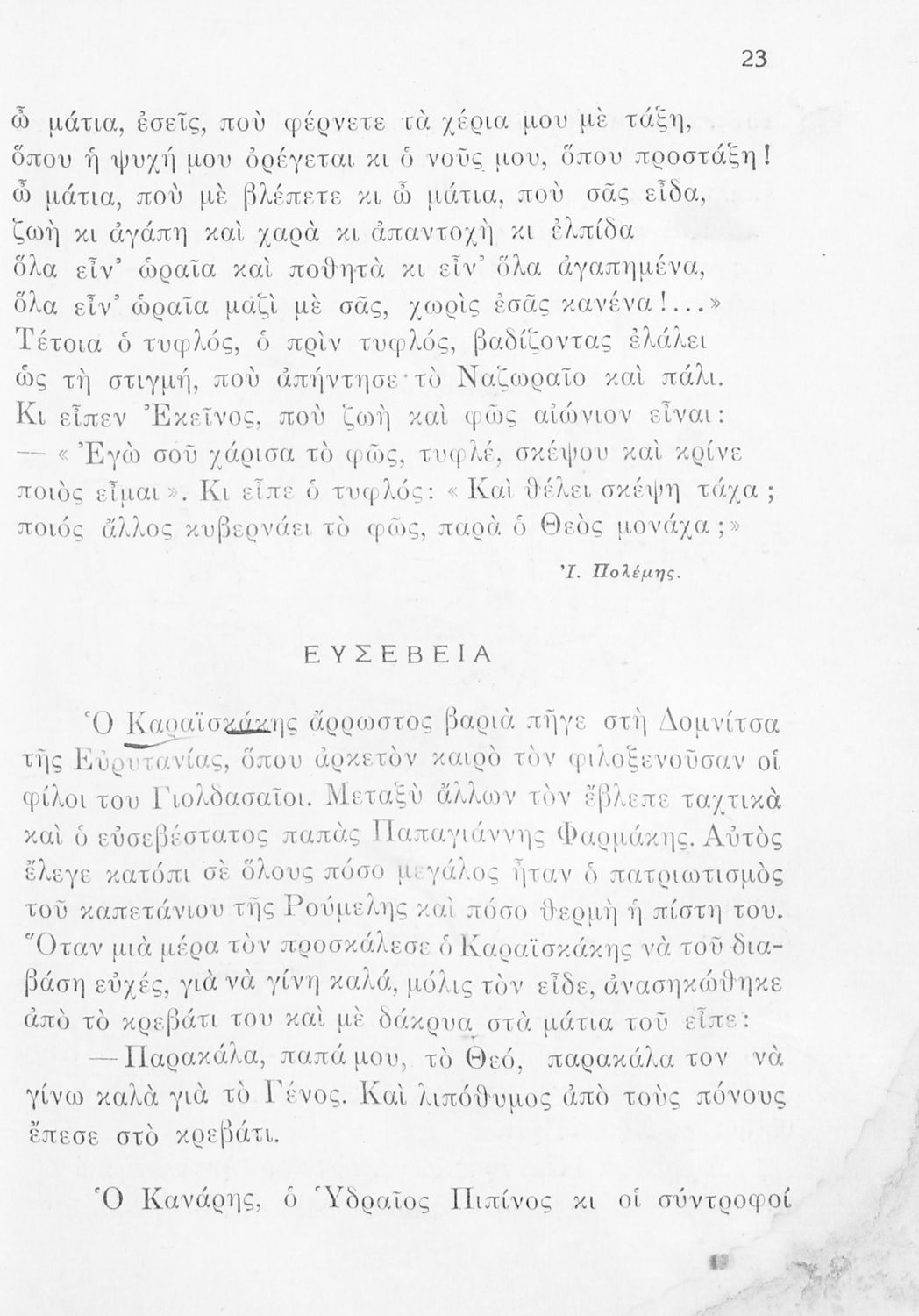 Σχετιζόμενοι όροι:  Πολέμης, Βιζυηνός, Κυριακή, προσευχή