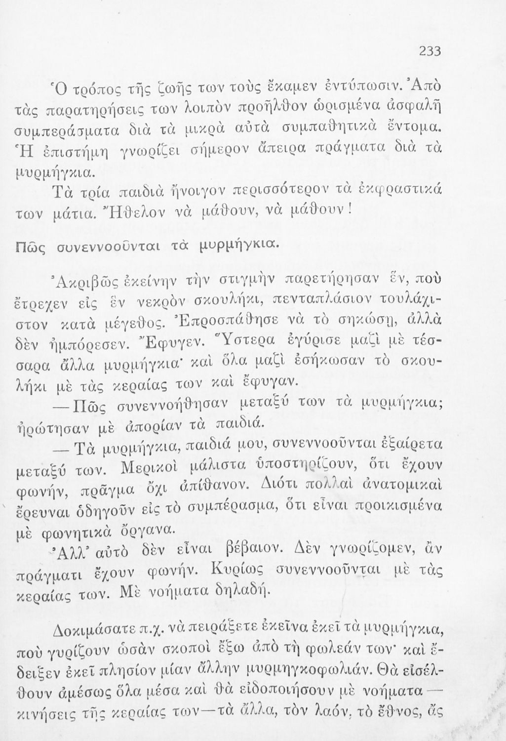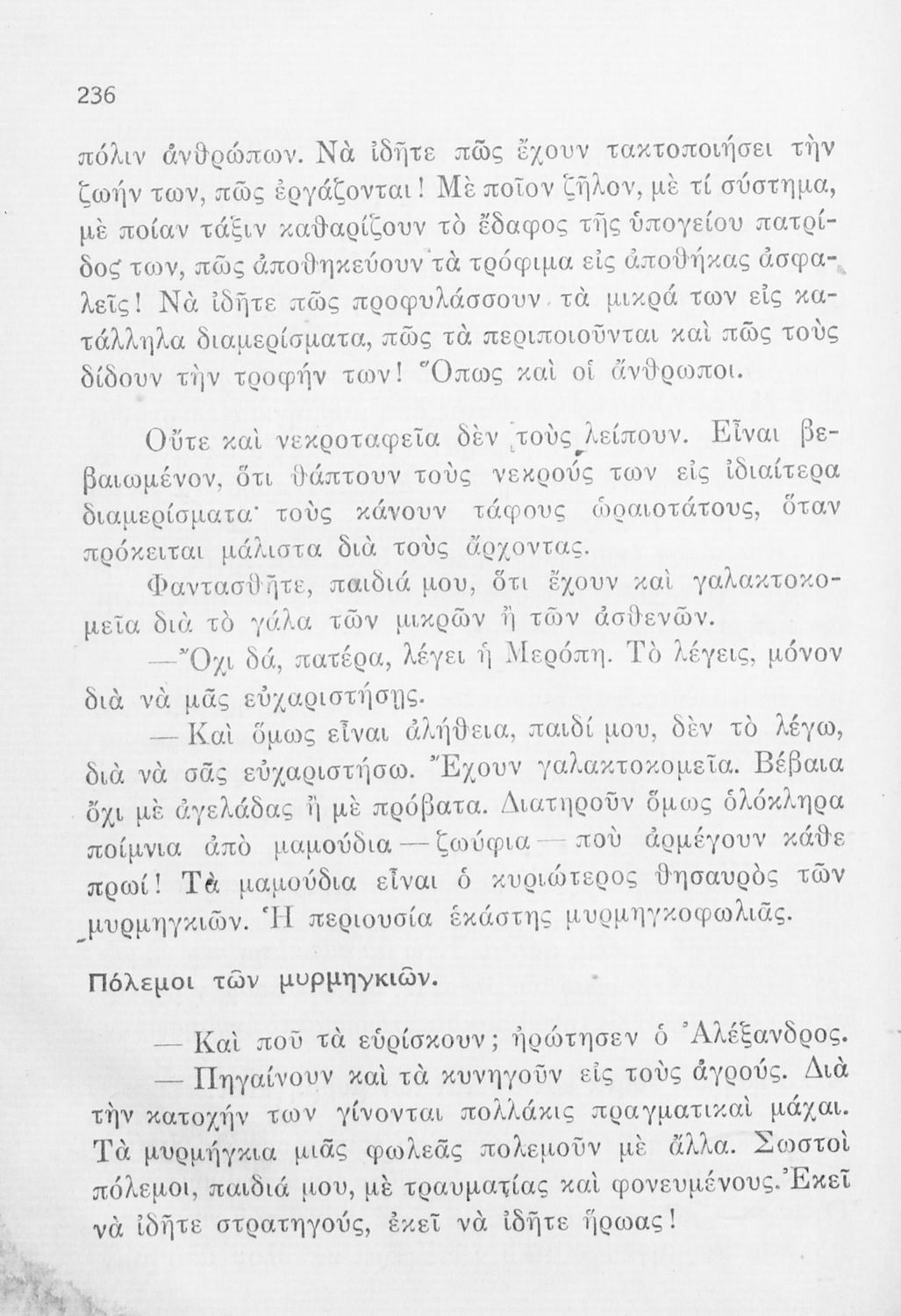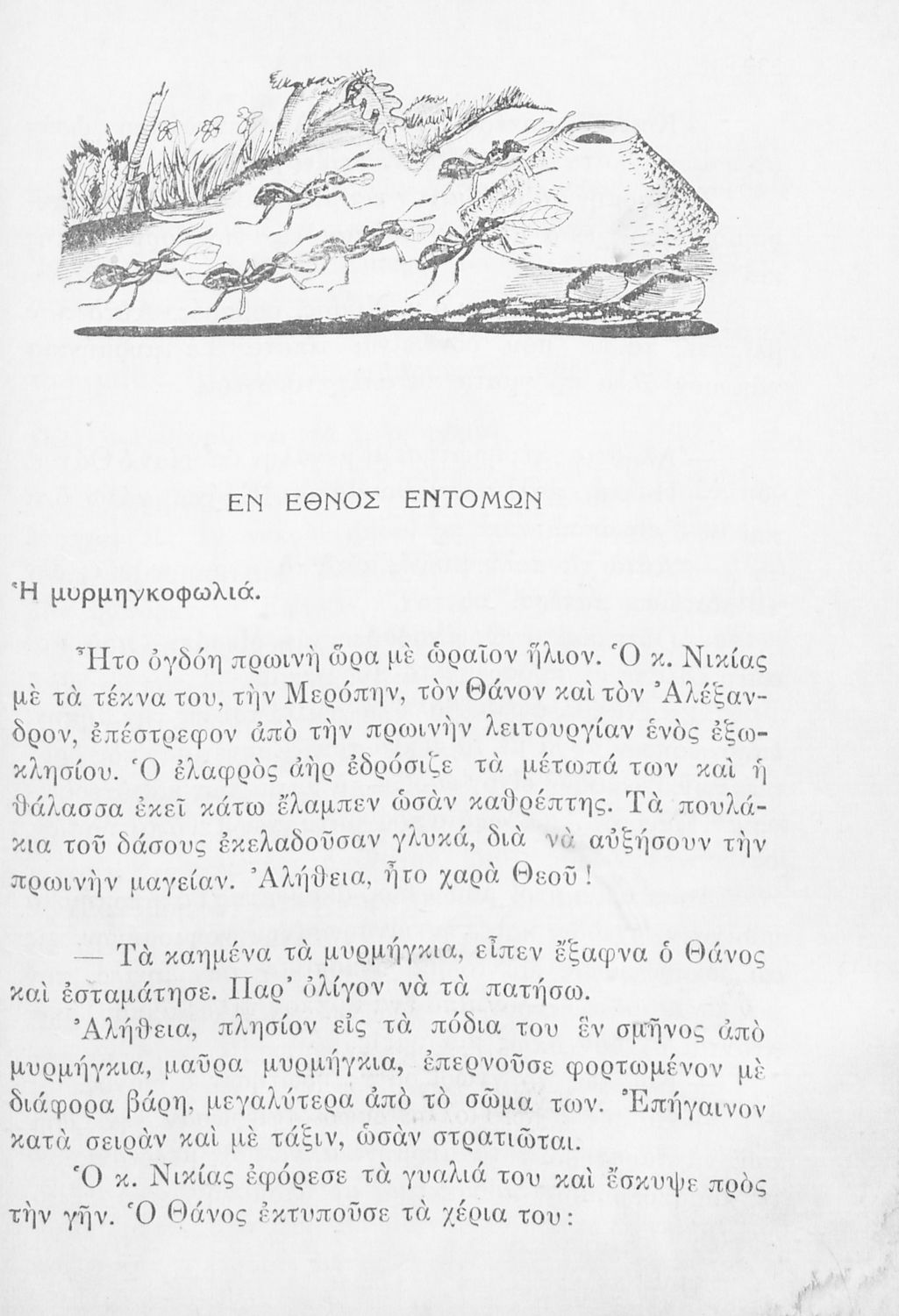 Αναγνωστικό Γ' Δημοτικού που περιέχει πεζά και ποιήματα εμπνευσμένα από τη θρησκευτική, εθνική, κοινωνική και ατομική ζωή, και την ελληνική φύση, ιστορία και μυθολογία.