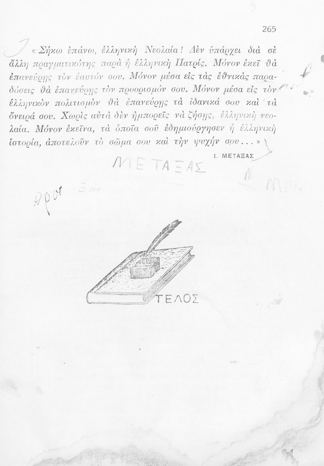 Σχετιζόμενοι όροι:  πατρίδα, θρησκεία, οικογένεια, Μεταξάς