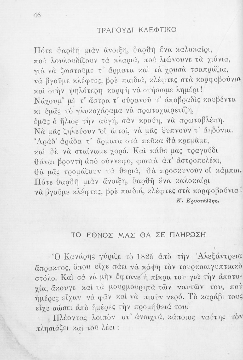 Αναγνωστικό ΣΤ΄ Δημοτικού που περιλαμβάνει πεζά και ποιήματα εμπνευσμένα από τη θρησκευτική, εθνική, οικογενειακή και κοινωνική ζωή, και την ελληνική φύση.