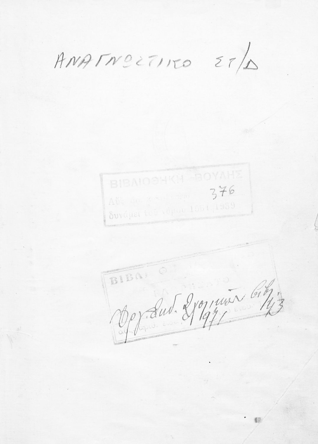 Εντοπισμός πρωτοτύπου: Βιβλιοθήκη της Βουλής των Ελλήνων Κωδικός βιβλιοθήκης: 20555637 |