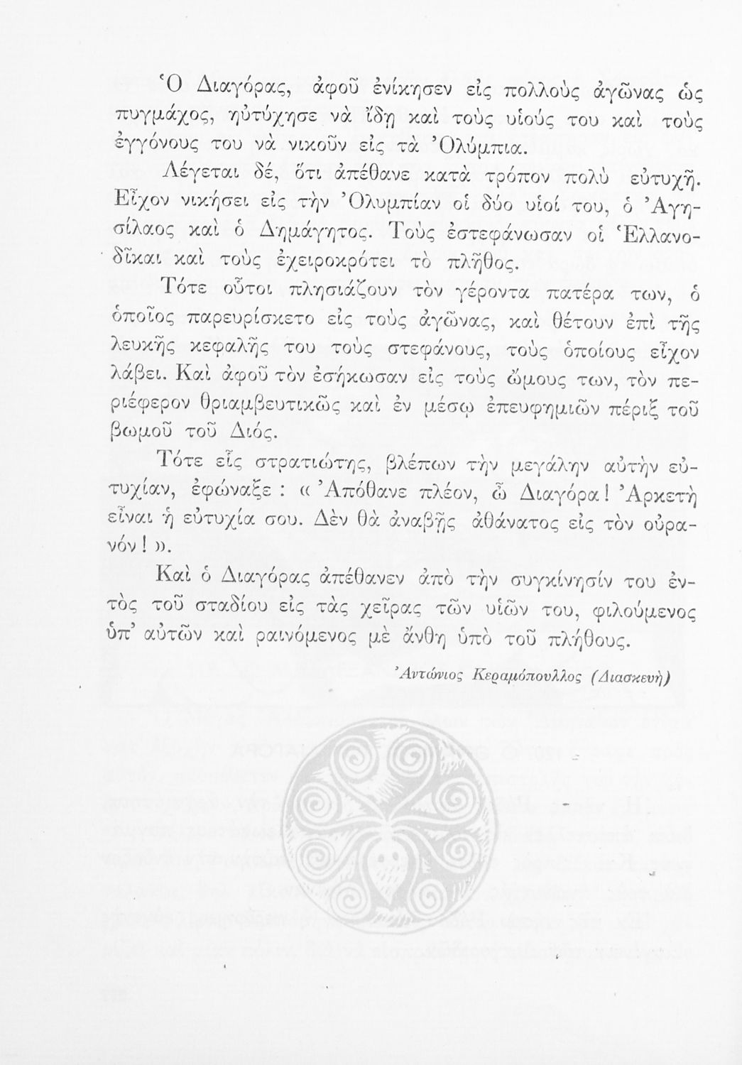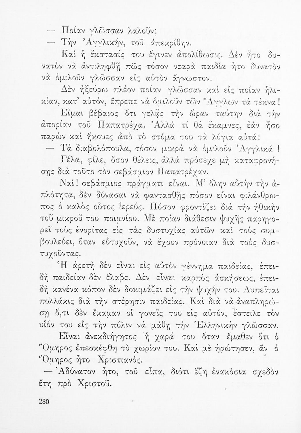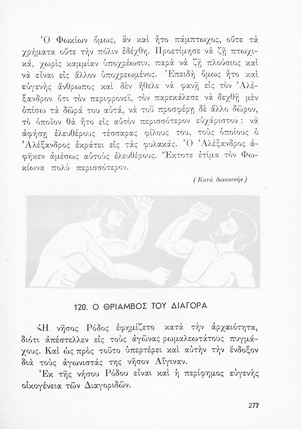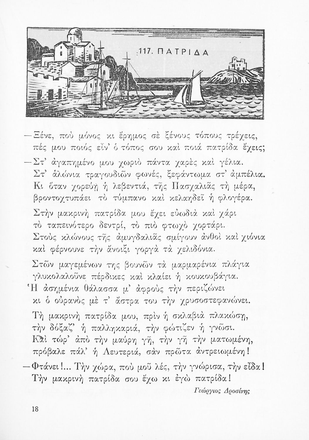Αναγνωστικό ΣΤ΄ Δημοτικού που περιλαμβάνει θέματα από τις ελληνικές παραδόσεις και μύθους, την ελληνική φύση και θάλασσα και το τρίπτυχο "Πατρίς-θρησκεία-οικογένειαα".