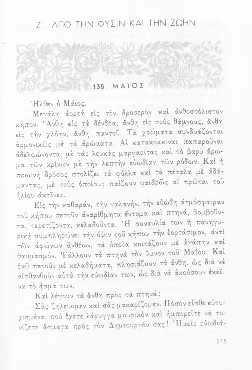 Αναγνωστικό ΣΤ΄ Δημοτικού που αντλεί τα θέματά του από τη θρησκευτική, εθνική, οικογενειακή, κοινωνική και επαγγελματική ζωή και την σύγχρονη ελληνική ιστορία.