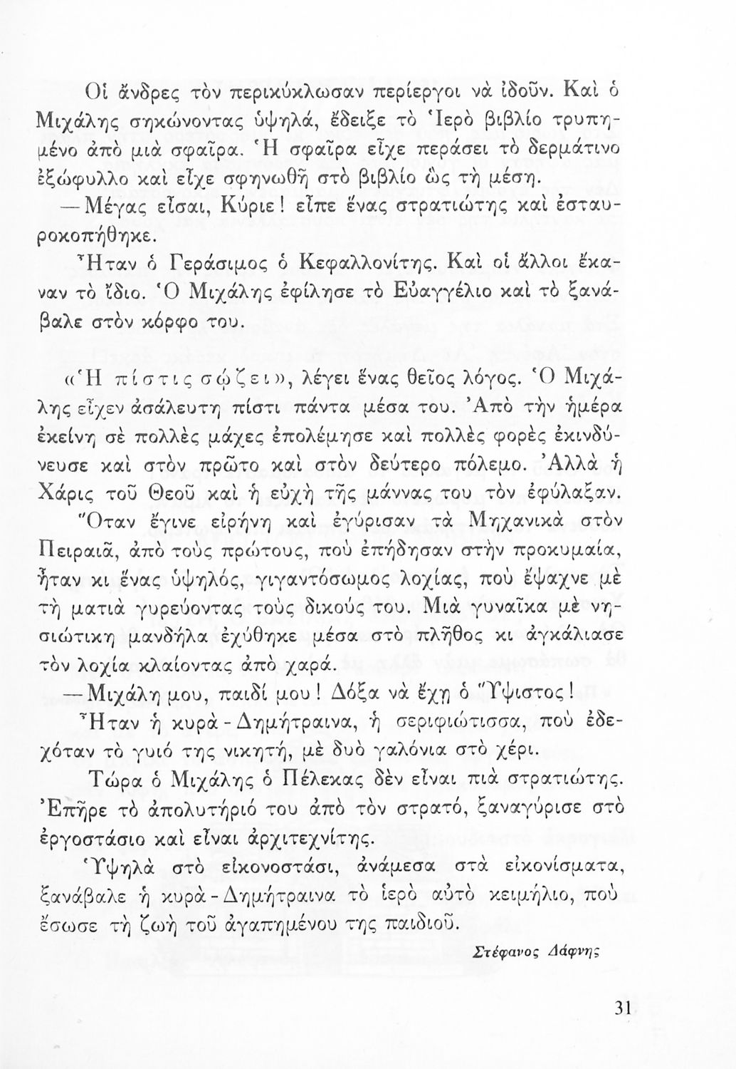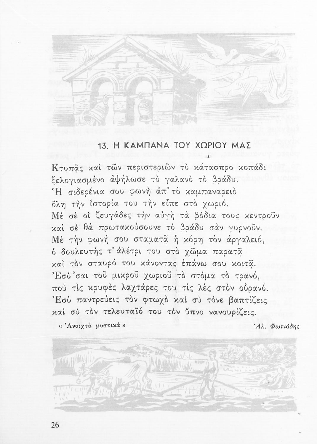 Αναγνωστικό ΣΤ΄ Δημοτικού που αντλεί τα θέματά του από τη θρησκευτική, εθνική, οικογενειακή, κοινωνική και επαγγελματική ζωή και την σύγχρονη ελληνική ιστορία.