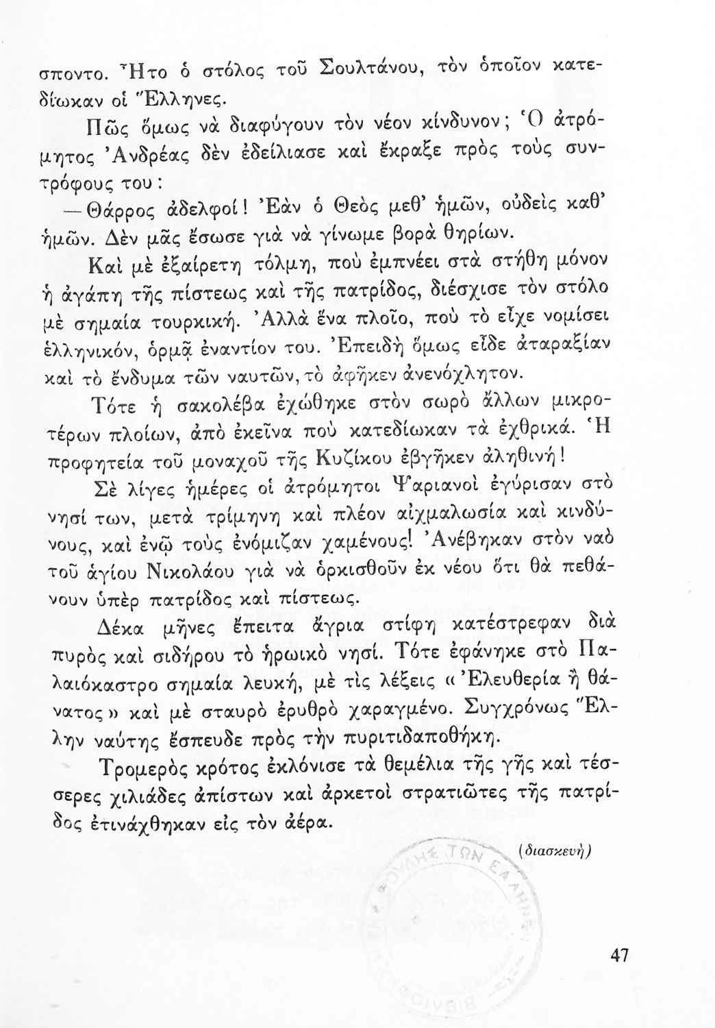 Αναγνωστικό ΣΤ΄ Δημοτικού που αντλεί τα θέματά του από τη θρησκευτική, εθνική, οικογενειακή, κοινωνική και επαγγελματική ζωή και την σύγχρονη ελληνική ιστορία.