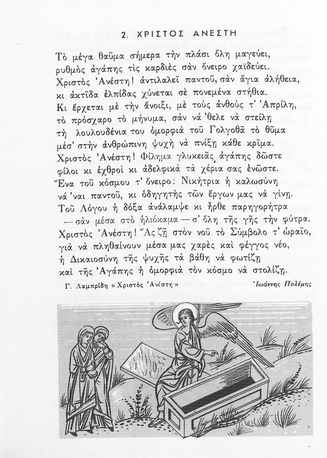 Αναγνωστικό ΣΤ΄ Δημοτικού που αντλεί τα θέματά του από τη θρησκευτική, εθνική, οικογενειακή, κοινωνική και επαγγελματική ζωή και την σύγχρονη ελληνική ιστορία.