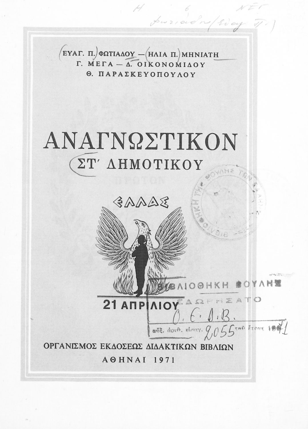 Εκδότης: Οργανισμός Εκδόσεως Διδακτικών Βιβλίων Έτος έκδοσης: 1971 Τόπος έκδοσης: Αθήνα Έκδοση: 10η Υπουργική απόφαση / Σύμβαση: 2067/5-3-1971 Έτος έγκρισης: 1971 |