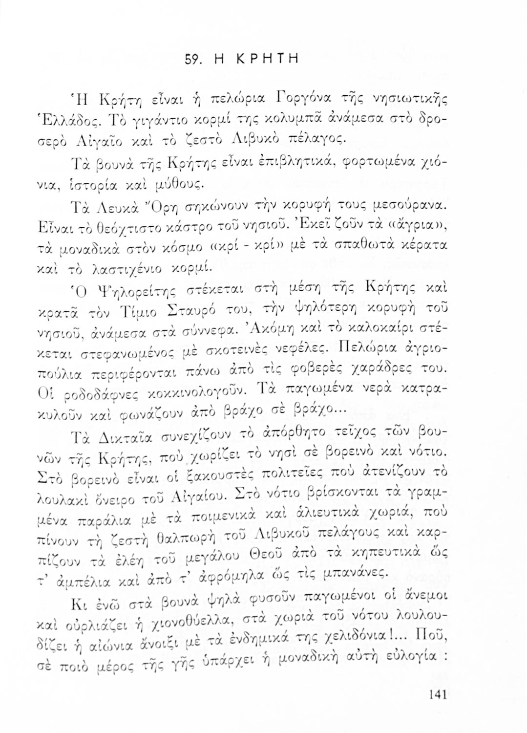 Αναγνωστικό ΣΤ΄ Δημοτικού που περιλαμβάνει θέματα από τις ελληνικές παραδόσεις και μύθους, την ελληνική φύση και θάλασσα και το τρίπτυχο "Πατρίς-θρησκεία-οικογένειαα".