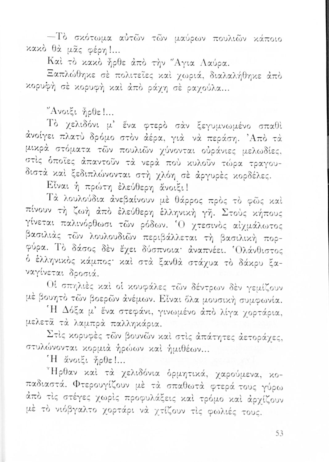 Αναγνωστικό ΣΤ΄ Δημοτικού που αντλεί τα θέματά του από τη θρησκευτική, εθνική, οικογενειακή, κοινωνική και επαγγελματική ζωή και την σύγχρονη ελληνική ιστορία.