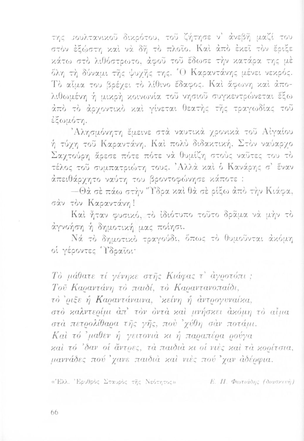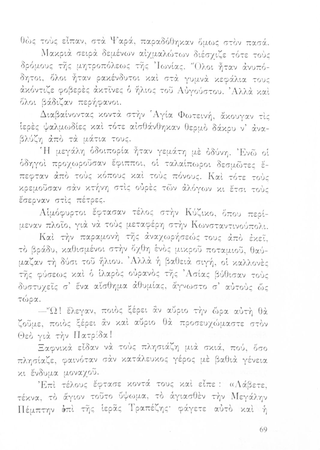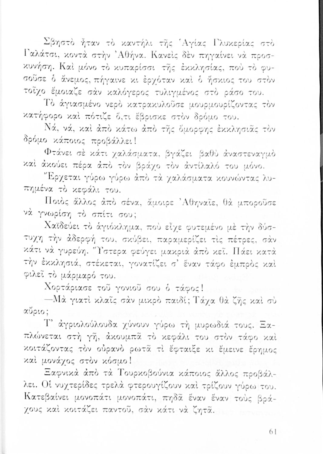 Αναγνωστικό ΣΤ΄ Δημοτικού που περιλαμβάνει θέματα από τις ελληνικές παραδόσεις και μύθους, την ελληνική φύση και θάλασσα και το τρίπτυχο "Πατρίς-θρησκεία-οικογένειαα".