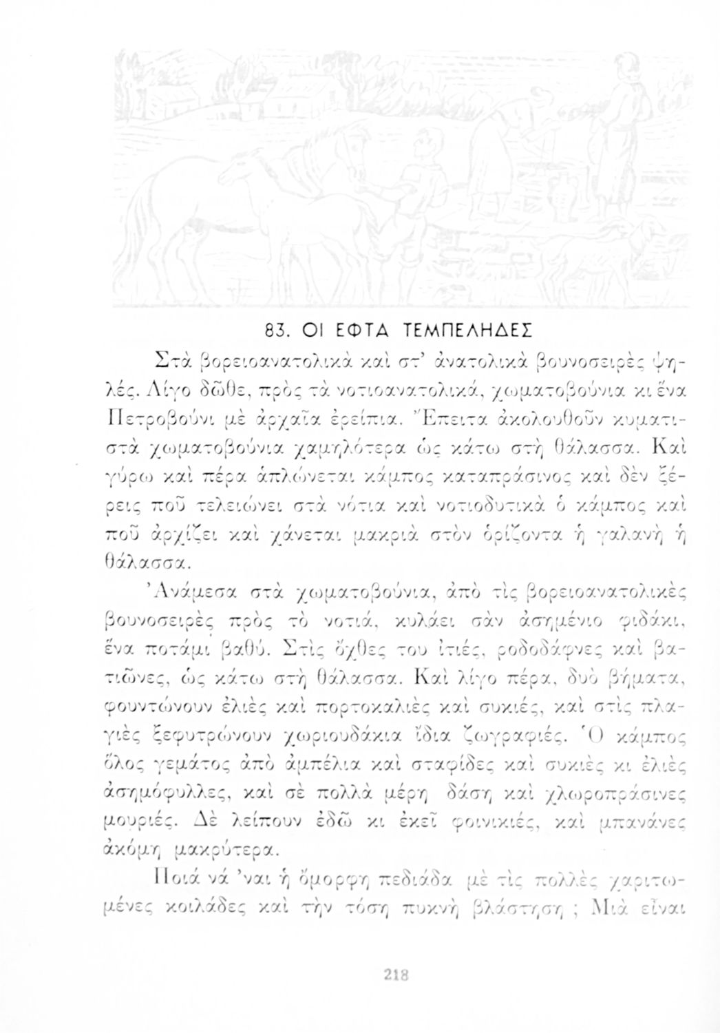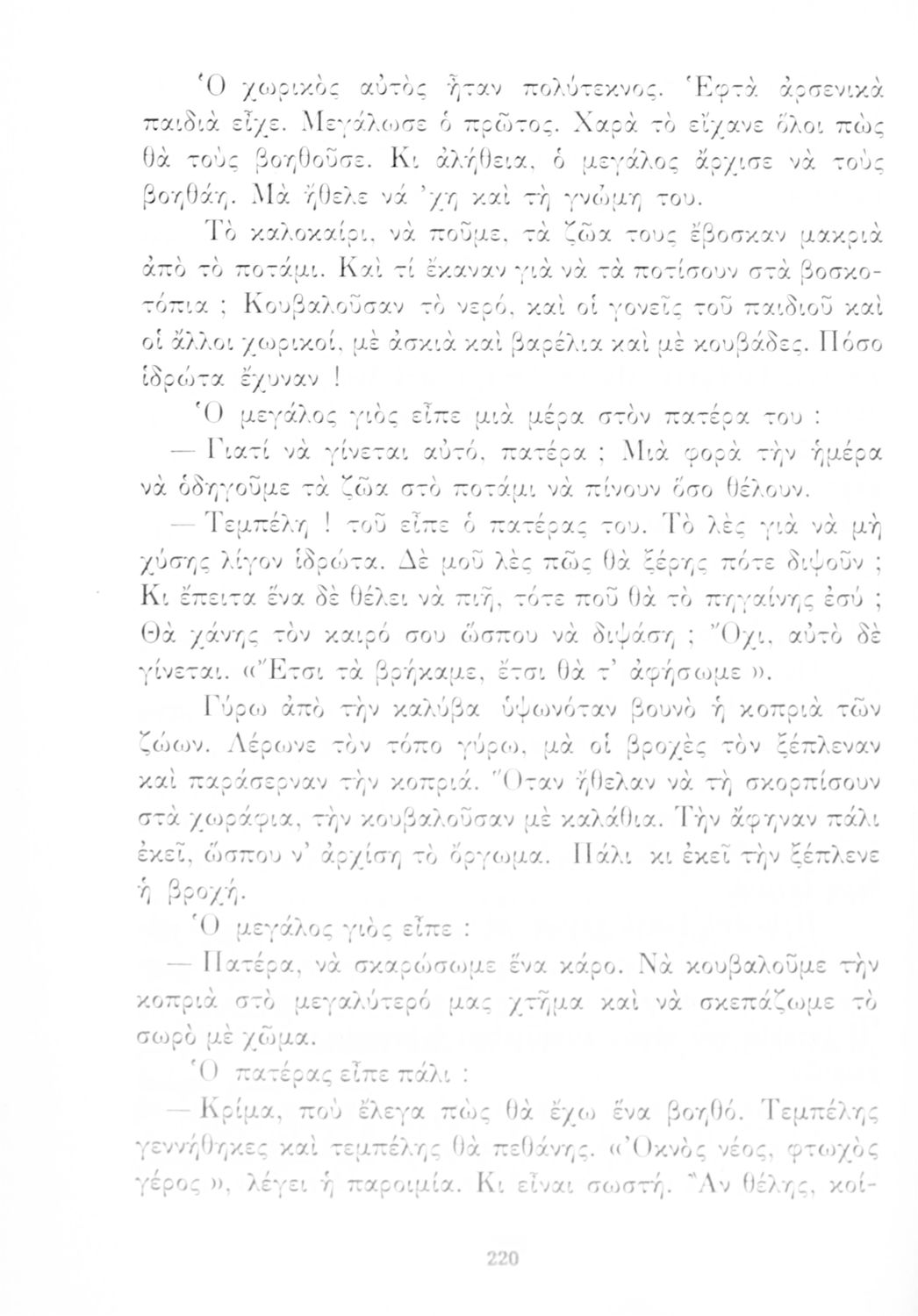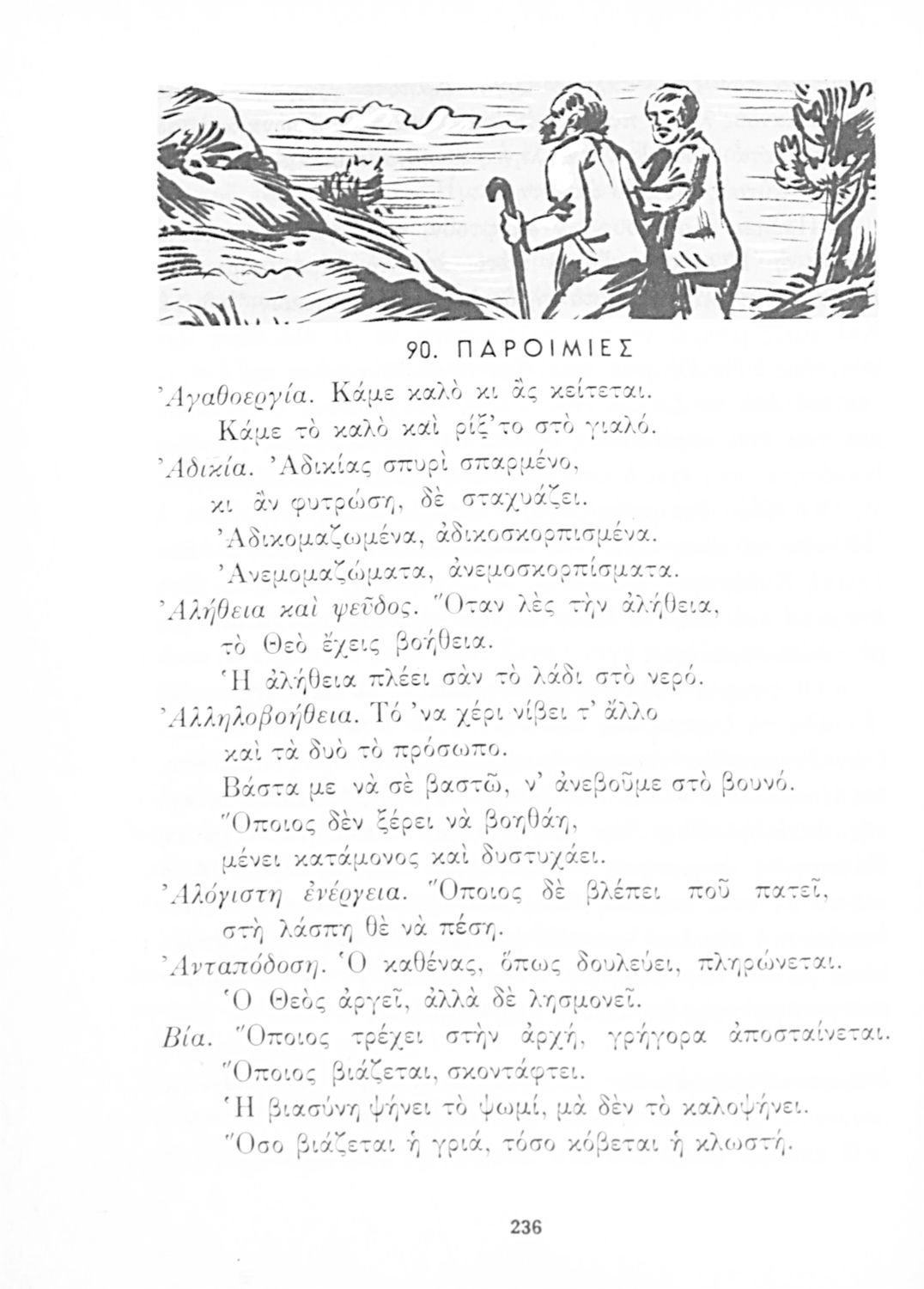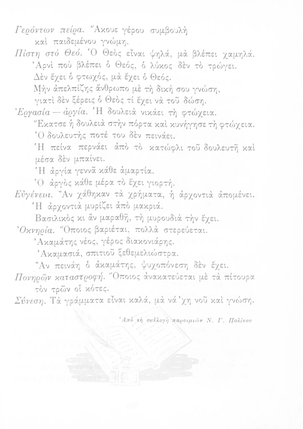 Αναγνωστικό ΣΤ΄ Δημοτικού που περιλαμβάνει πεζά και ποιήματα εμπνευσμένα από τη θρησκευτική, εθνική και κοινωνική ζωή καθώς και από τις ασχολίες των Ελλήνων.