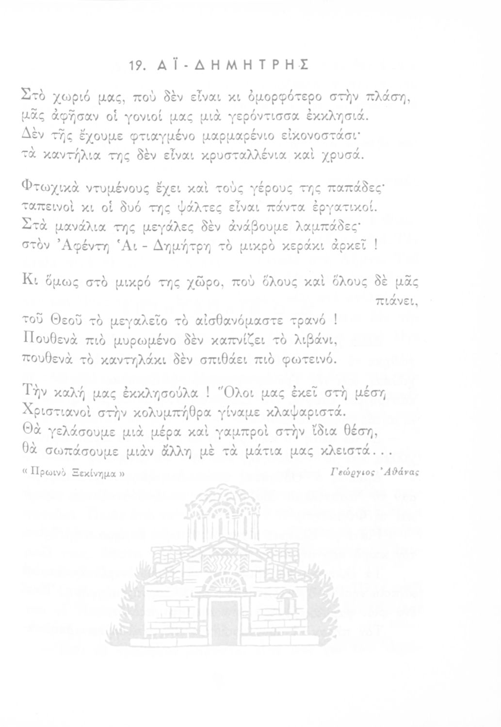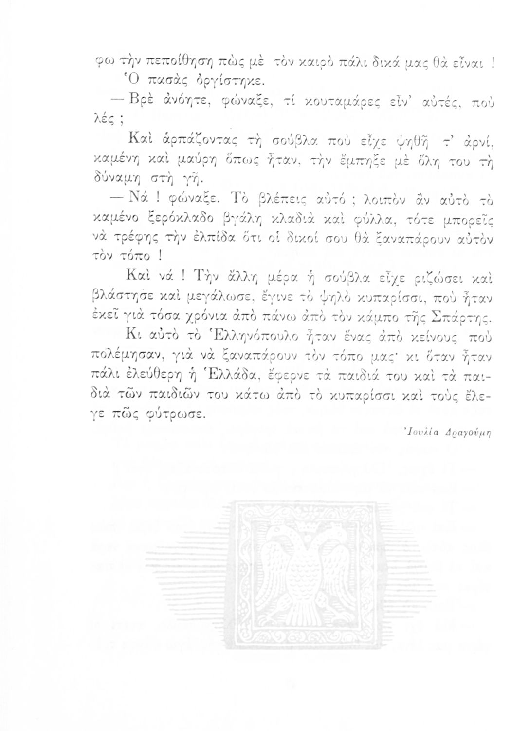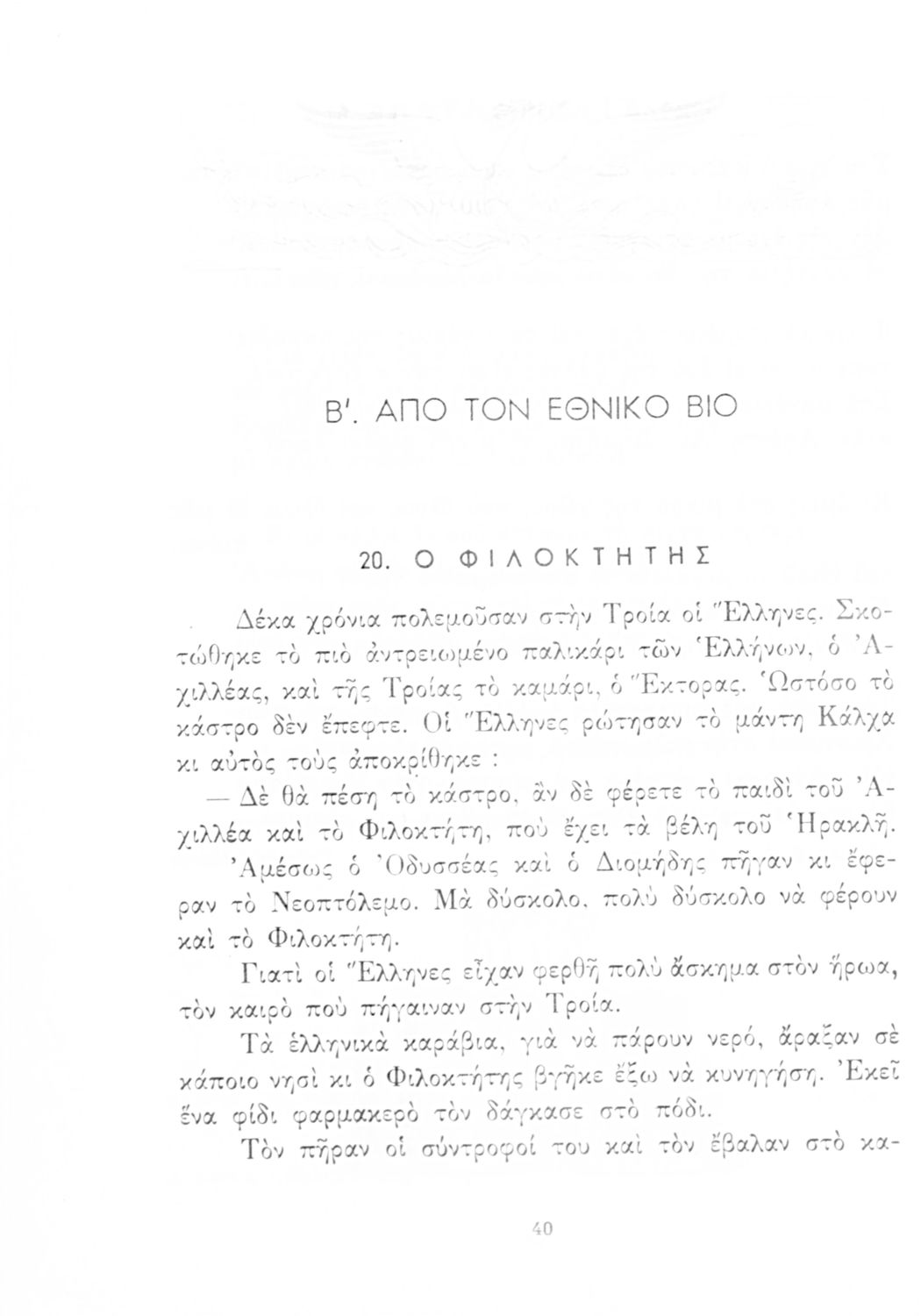 Αναγνωστικό ΣΤ΄ Δημοτικού που περιλαμβάνει πεζά και ποιήματα εμπνευσμένα από τη θρησκευτική, εθνική και κοινωνική ζωή καθώς και από τις ασχολίες των Ελλήνων.