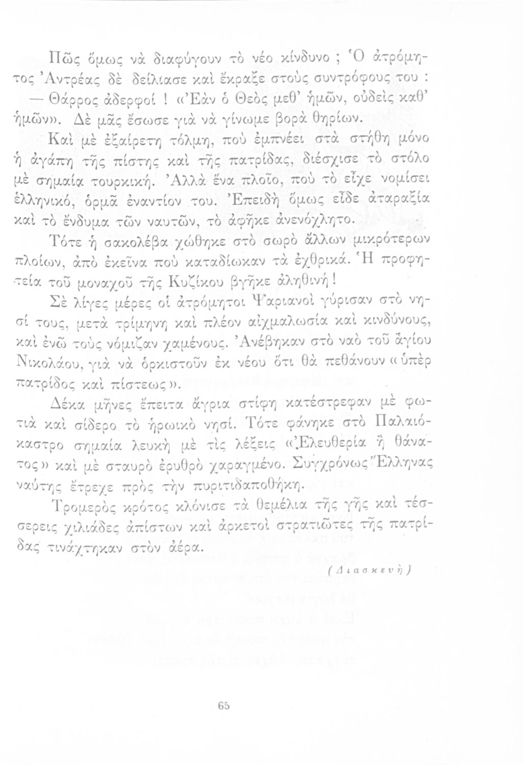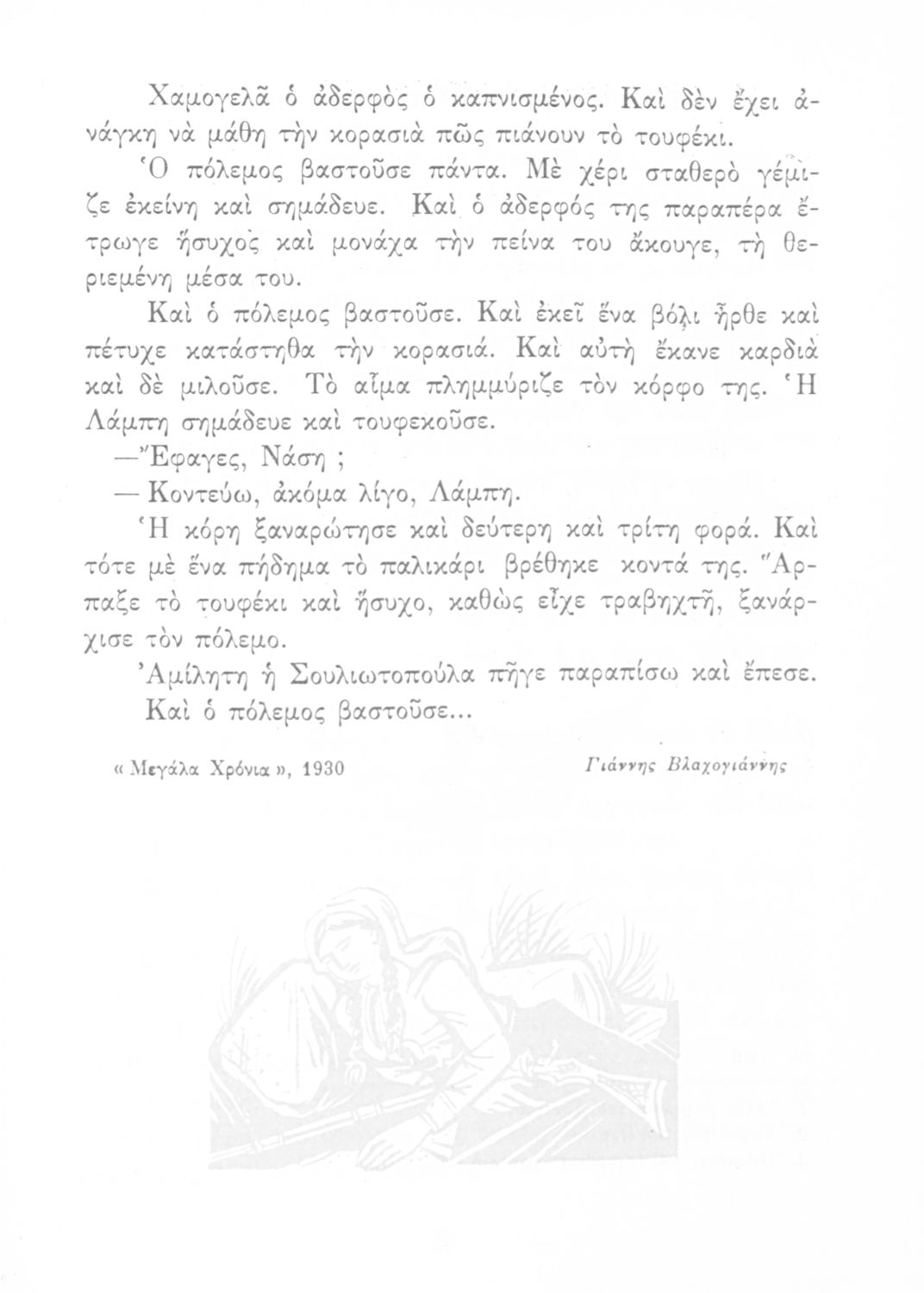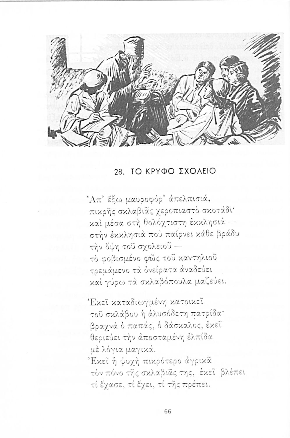 Αναγνωστικό ΣΤ΄ Δημοτικού που περιλαμβάνει πεζά και ποιήματα εμπνευσμένα από τη θρησκευτική, εθνική και κοινωνική ζωή καθώς και από τις ασχολίες των Ελλήνων.