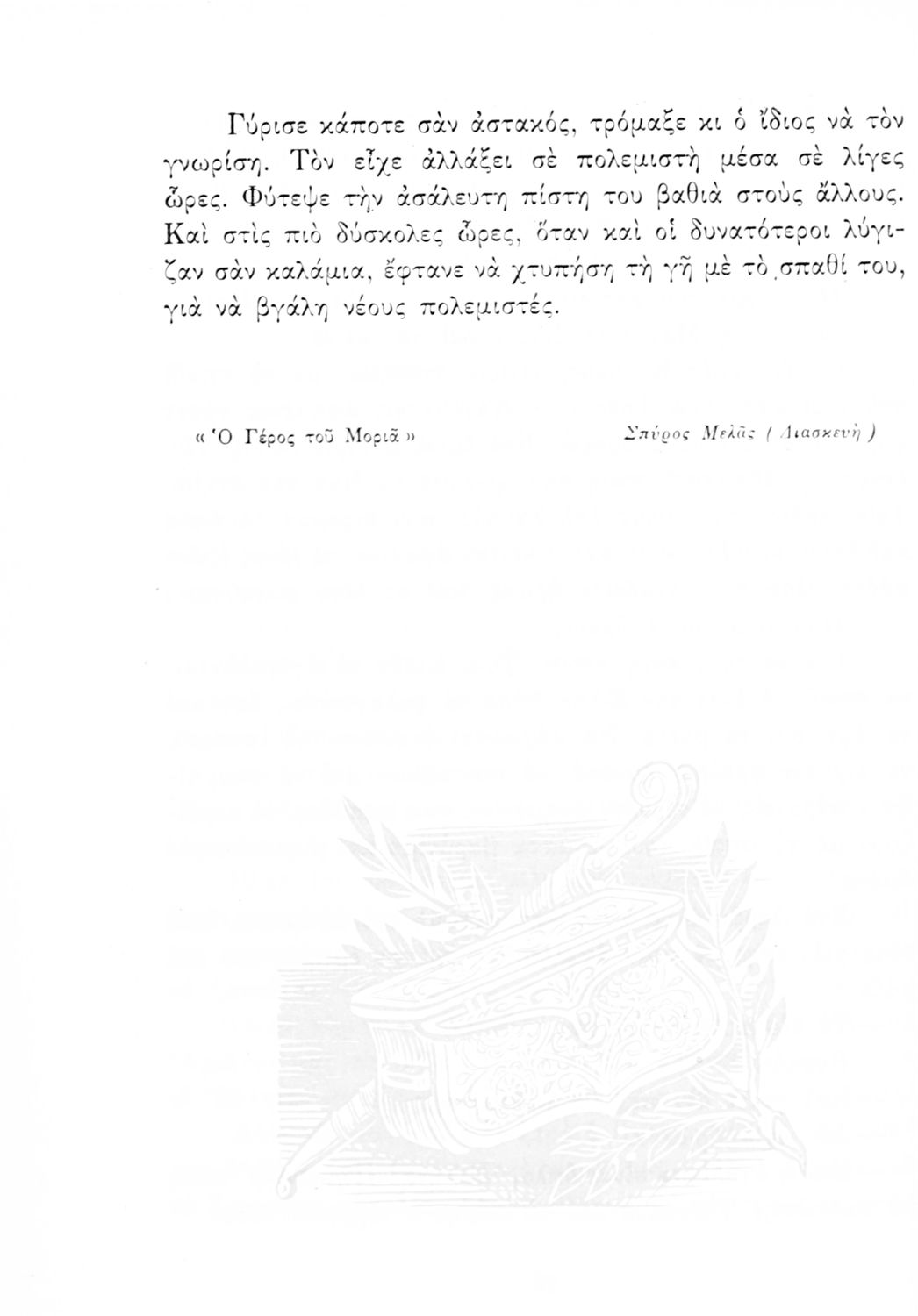 Αναγνωστικό ΣΤ΄ Δημοτικού που περιλαμβάνει πεζά και ποιήματα εμπνευσμένα από τη θρησκευτική, εθνική και κοινωνική ζωή καθώς και από τις ασχολίες των Ελλήνων.