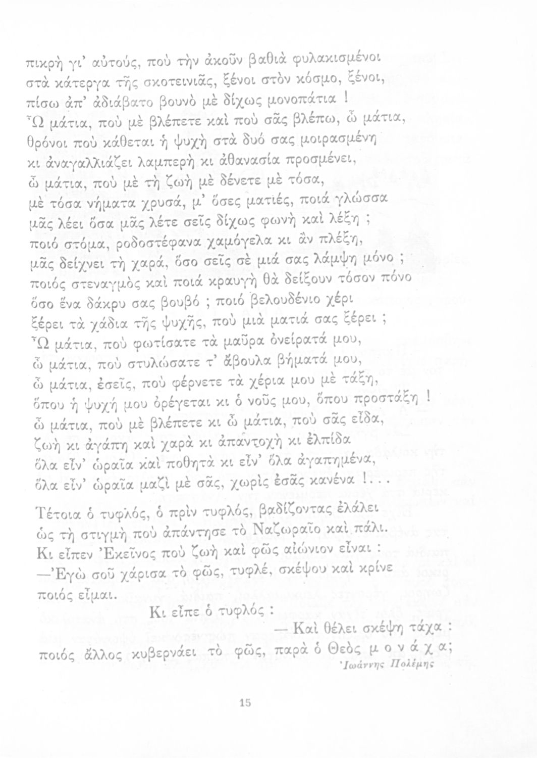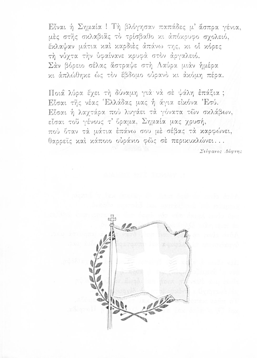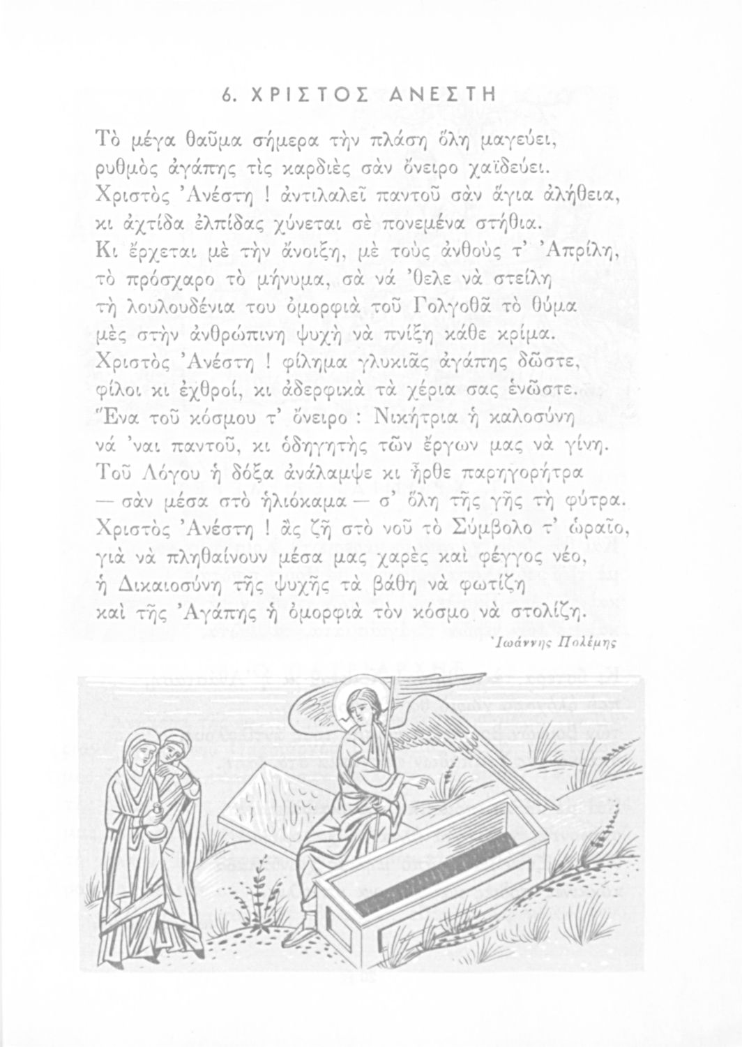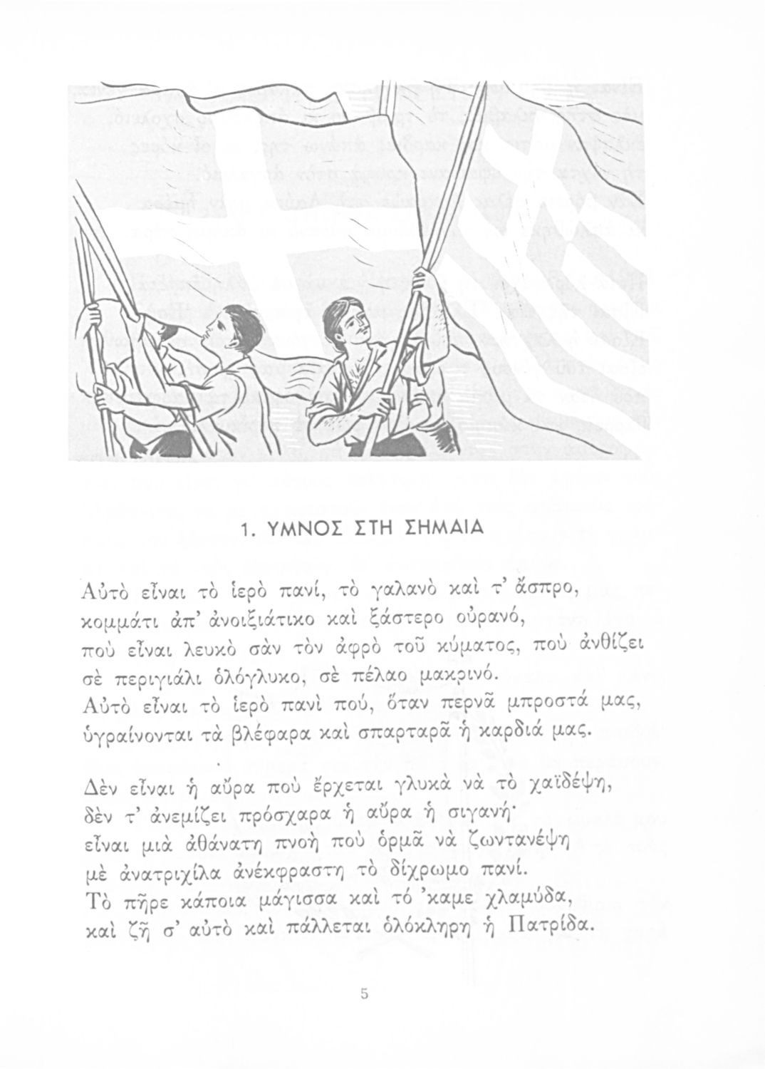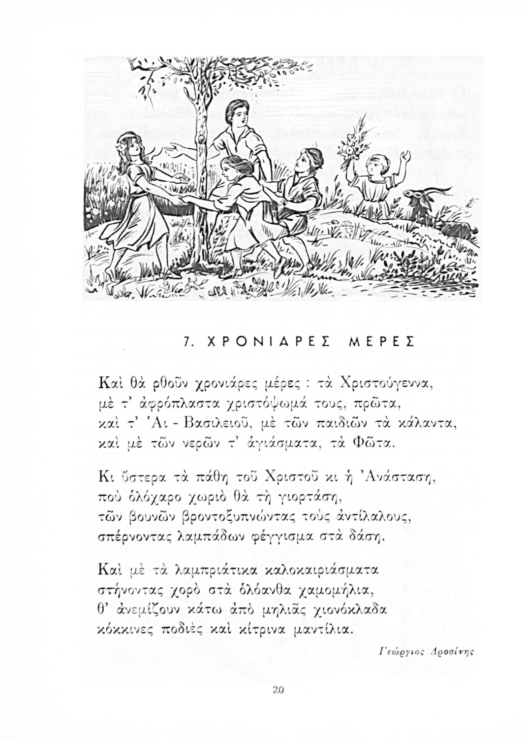 Αναγνωστικό ΣΤ΄ Δημοτικού που περιλαμβάνει πεζά και ποιήματα εμπνευσμένα από τη θρησκευτική, εθνική και κοινωνική ζωή καθώς και από τις ασχολίες των Ελλήνων.