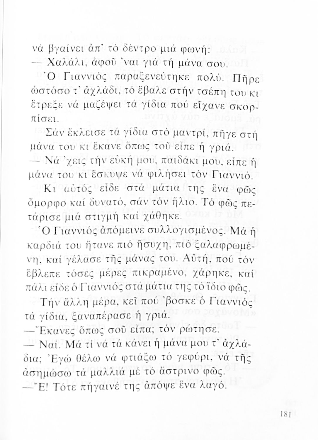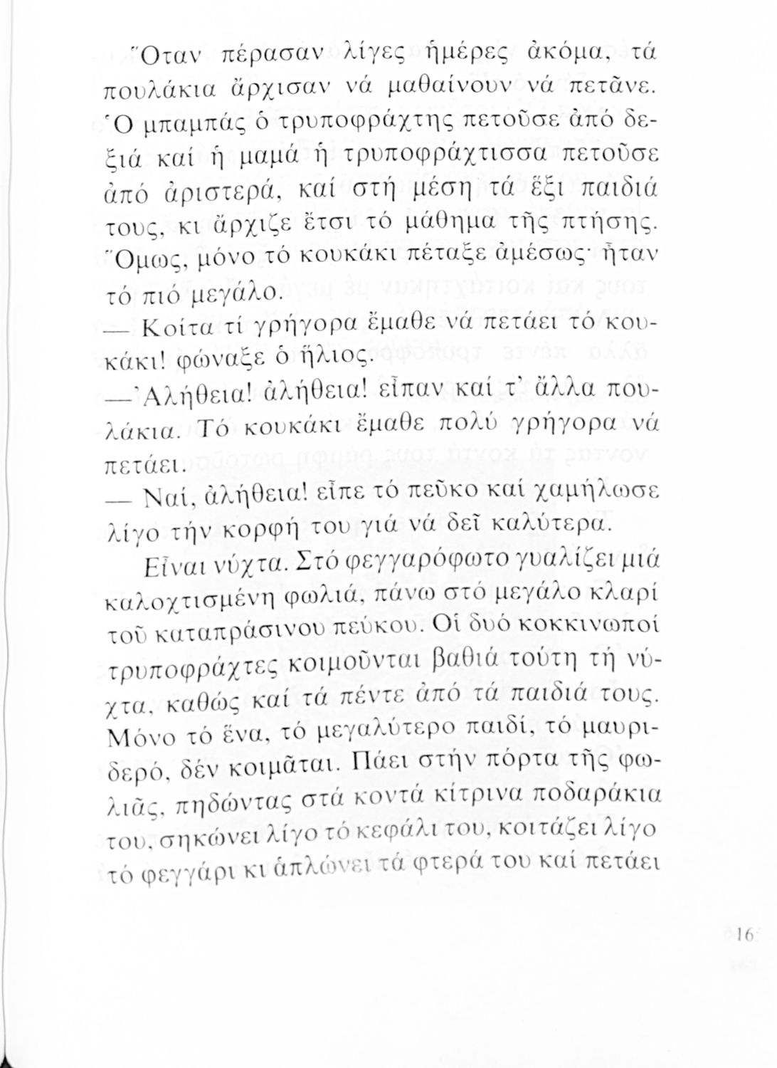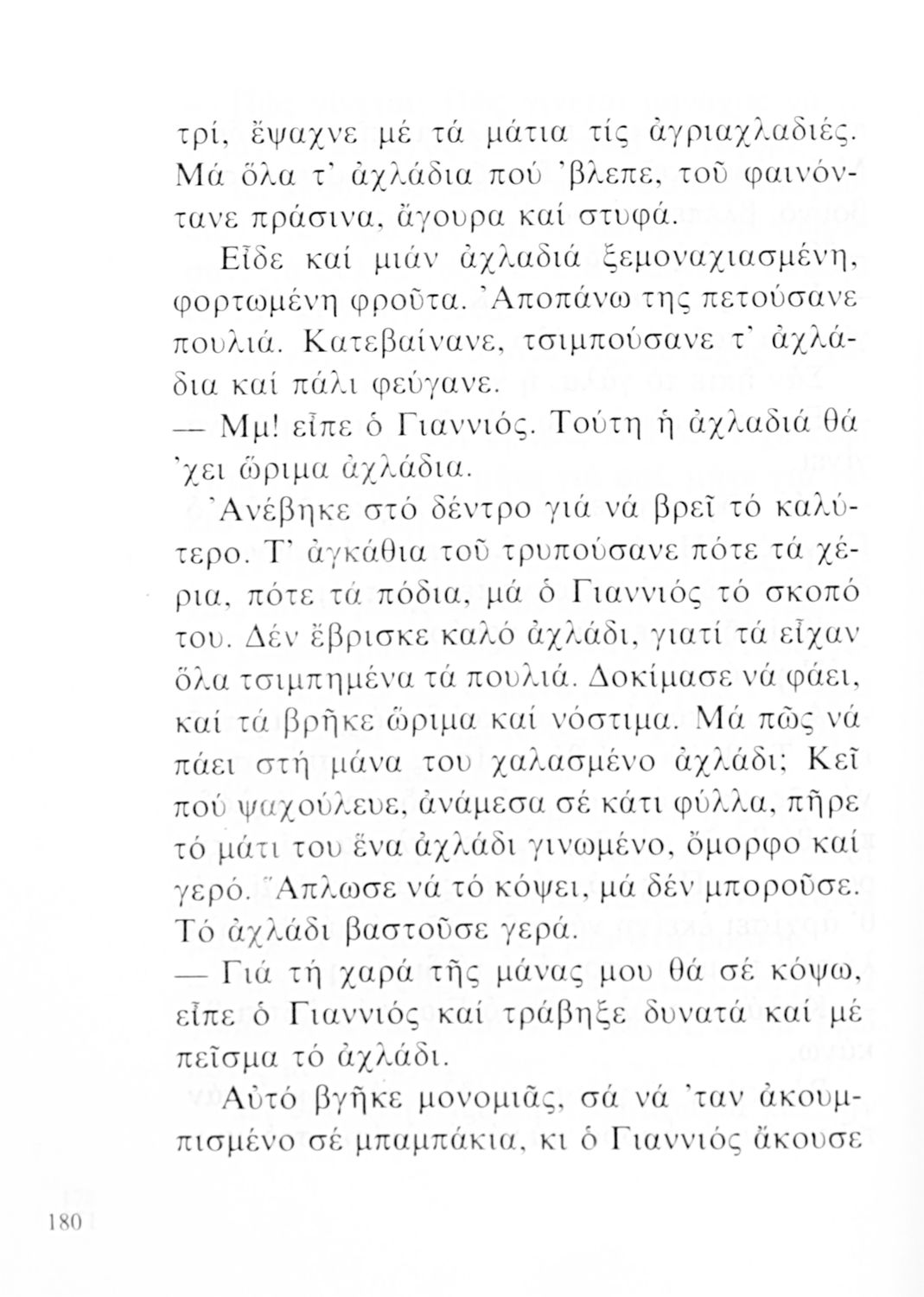 Αναγνωστικό που περιλαμβάνει πεζά και ποιήματα της νέας ελληνικής λογοτεχνίας για τους μαθητές του Δημοτικού. Το βιβλίο είναι αφιερωμένο στη μνήμη του Ζαχαρία Παπαντωνίου και αναδημοσιεύει αρκετά κείμενα από τα αναγνωστικά των εκπαιδευτικών μεταρρυθμίσεων του Ελευθερίου Βενιζέλου.