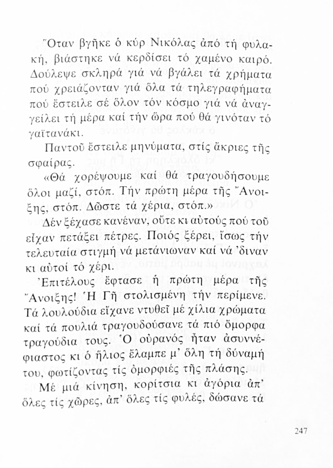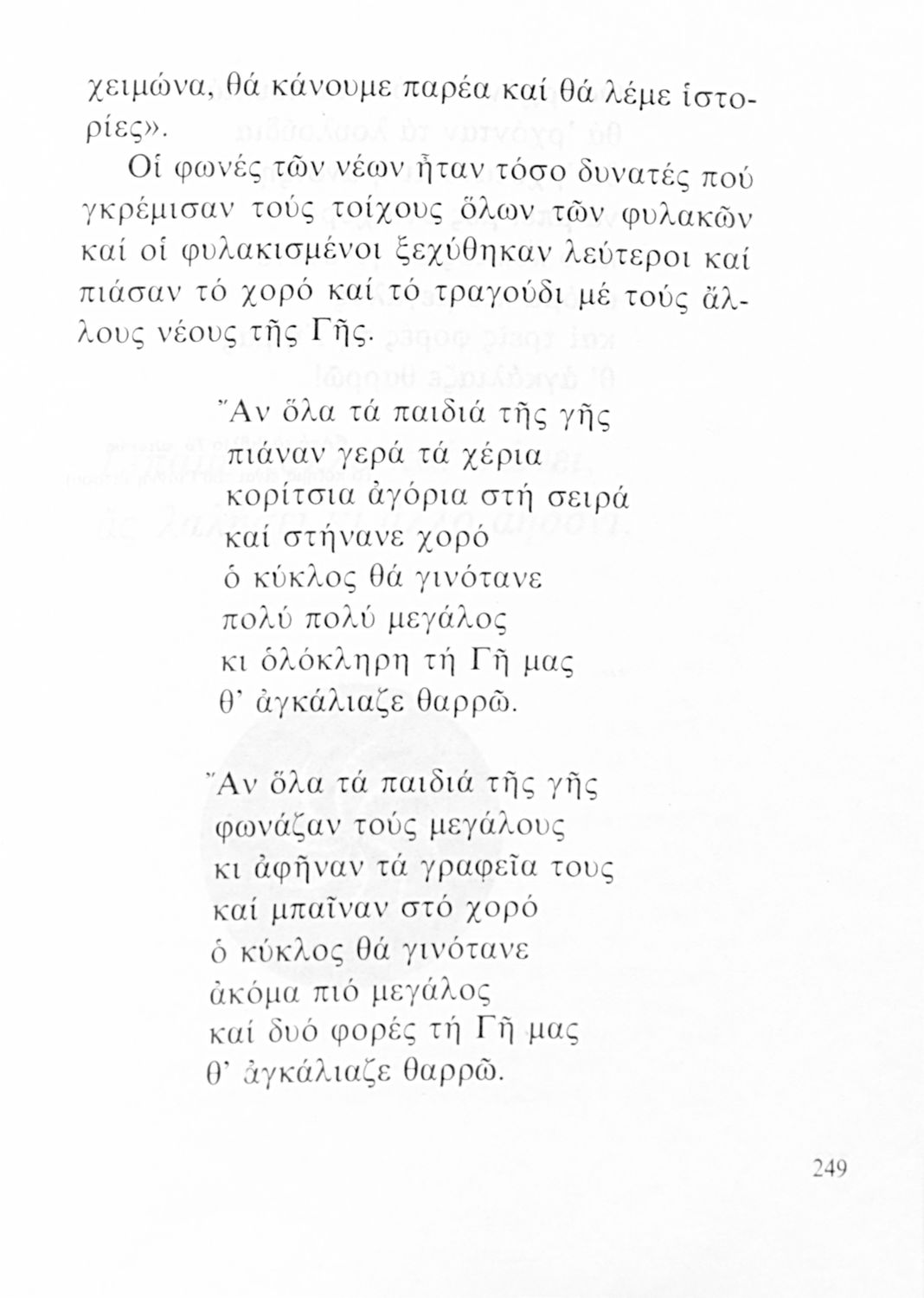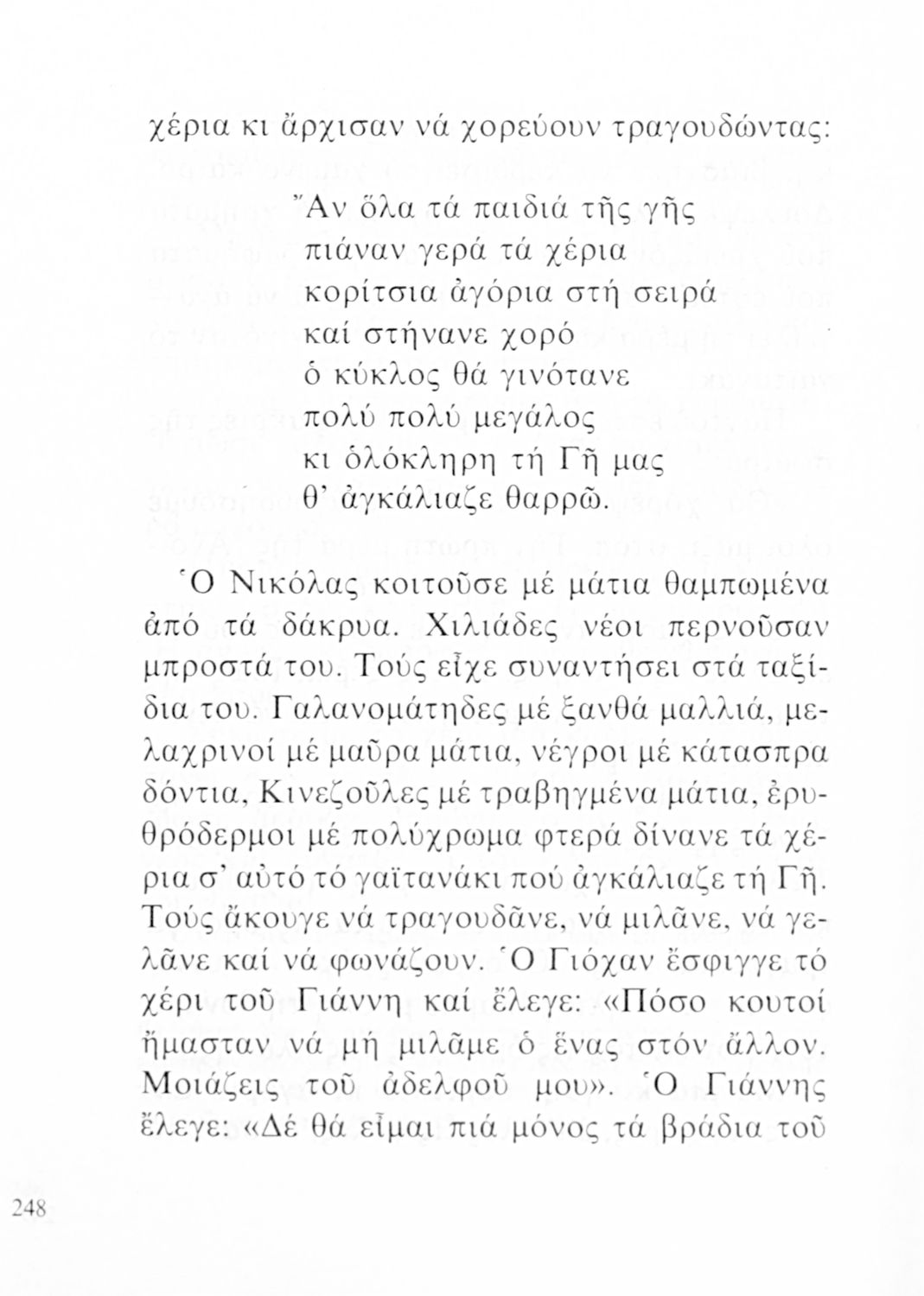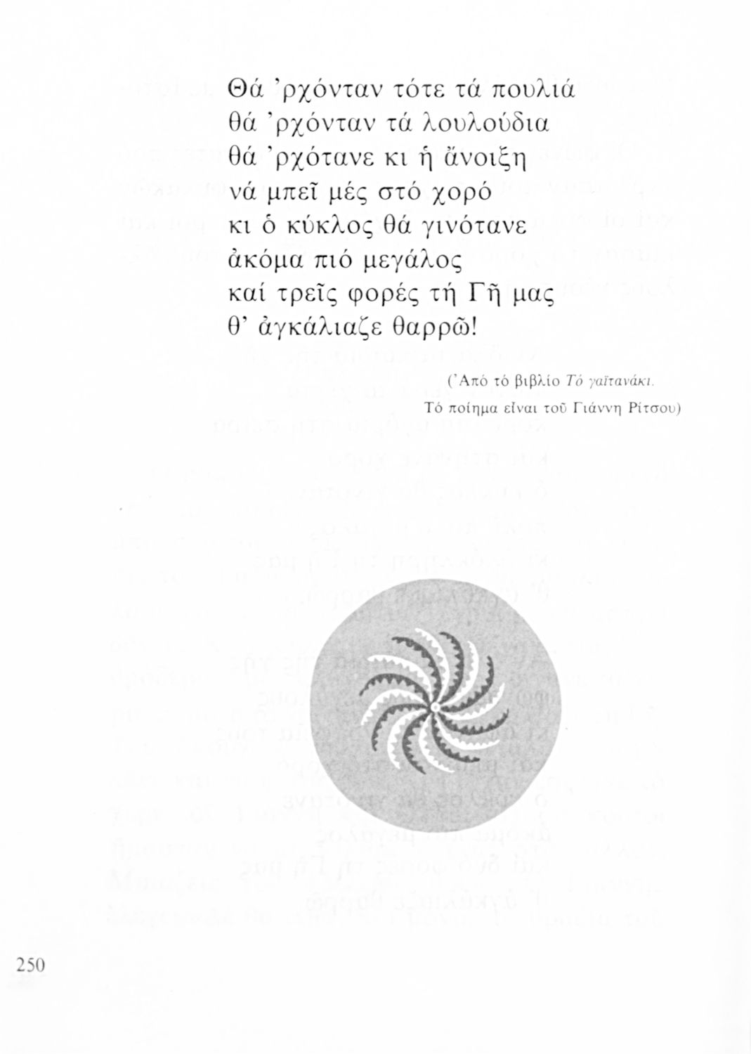 Αναγνωστικό που περιλαμβάνει πεζά και ποιήματα της νέας ελληνικής λογοτεχνίας για τους μαθητές του Δημοτικού. Το βιβλίο είναι αφιερωμένο στη μνήμη του Ζαχαρία Παπαντωνίου και αναδημοσιεύει αρκετά κείμενα από τα αναγνωστικά των εκπαιδευτικών μεταρρυθμίσεων του Ελευθερίου Βενιζέλου.