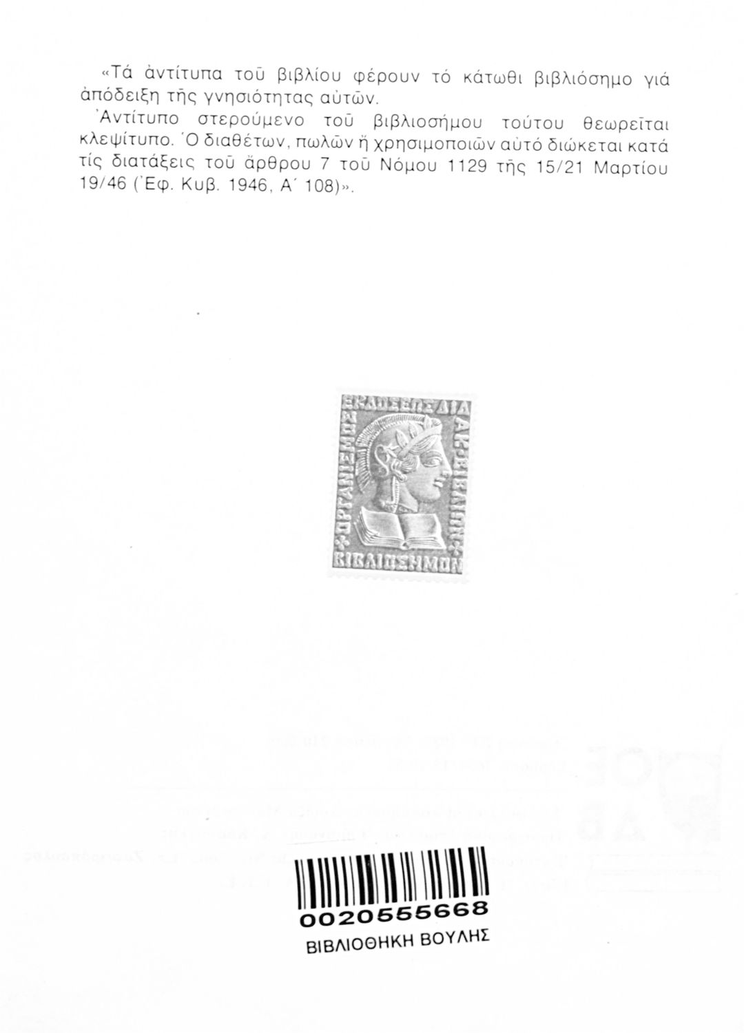 Κωδικός βιβλιοθήκης: 0020555668