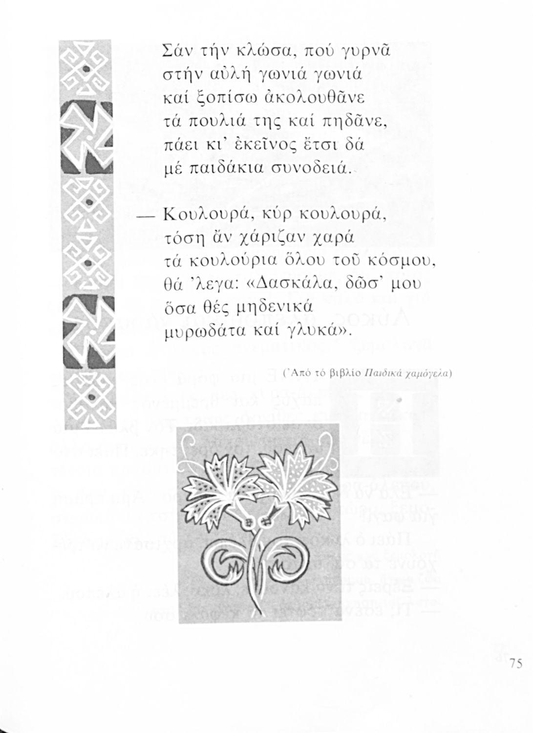 Αναγνωστικό για τους μαθητές της Γ΄ και Δ΄ Δημοτικού που περιλαμβάνει με πεζά και ποιήματα της νέας ελληνικής λογοτεχνίας εμπνευσμένα από την καθημερινότητα των παιδιών και των οικογενειών τους, την ελληνική ...